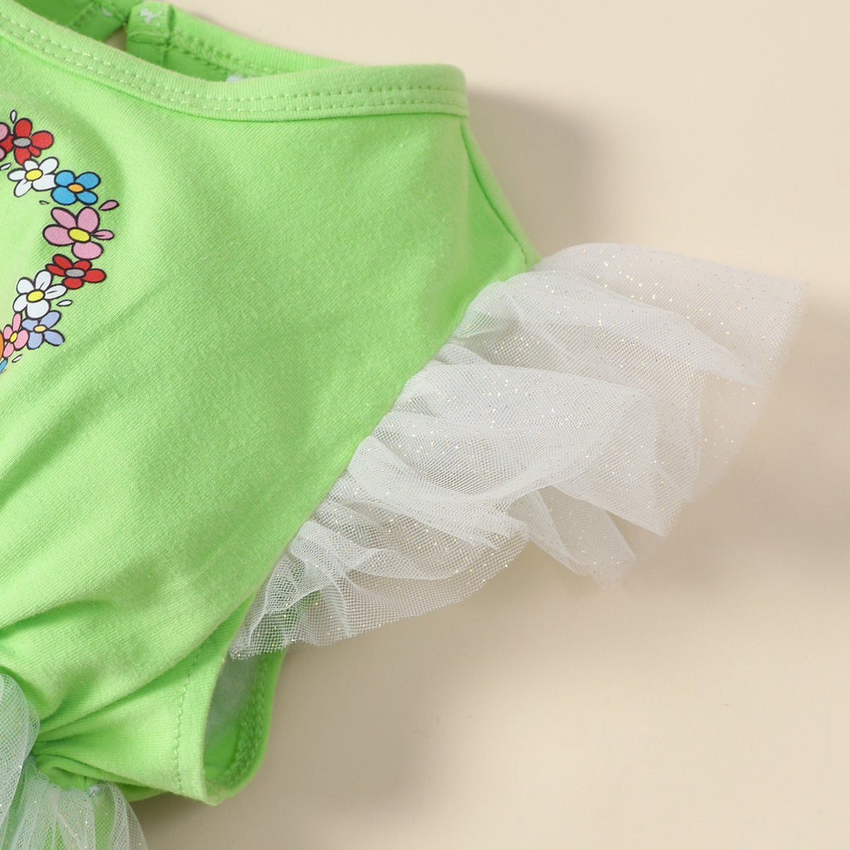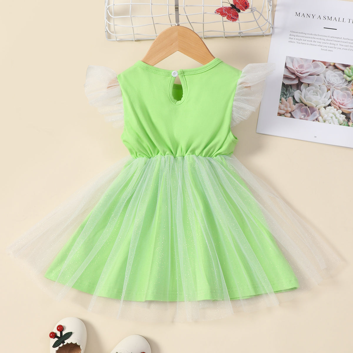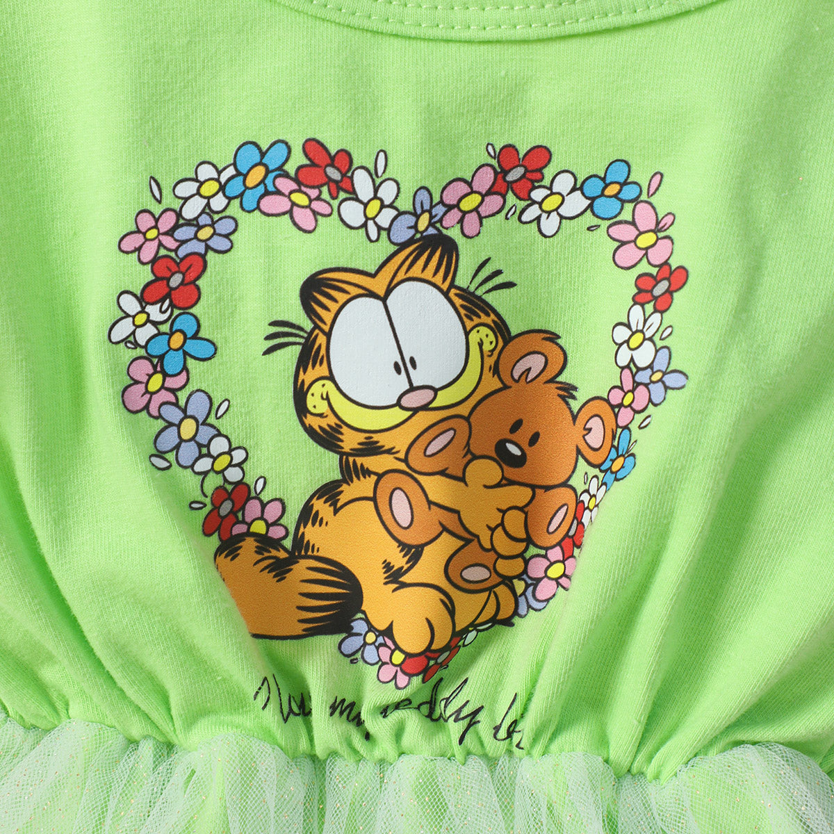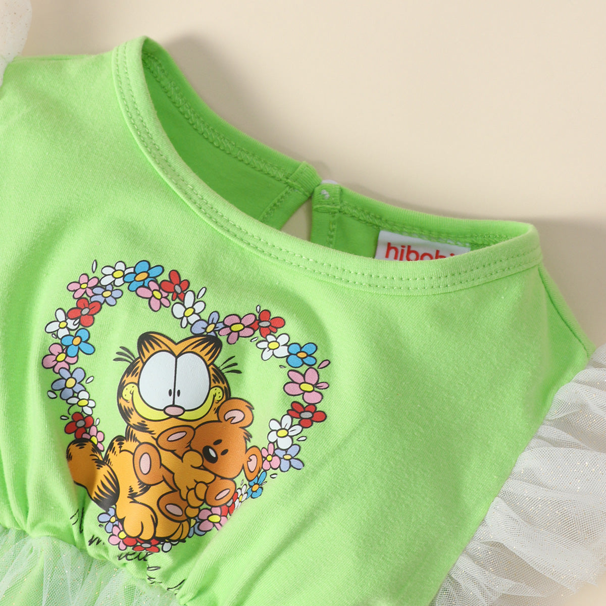 hibobi x Garfield Toddler Girls Sweet Cute Printing Cartoon Mesh Hem Fly Sleeves Dress Wholesale