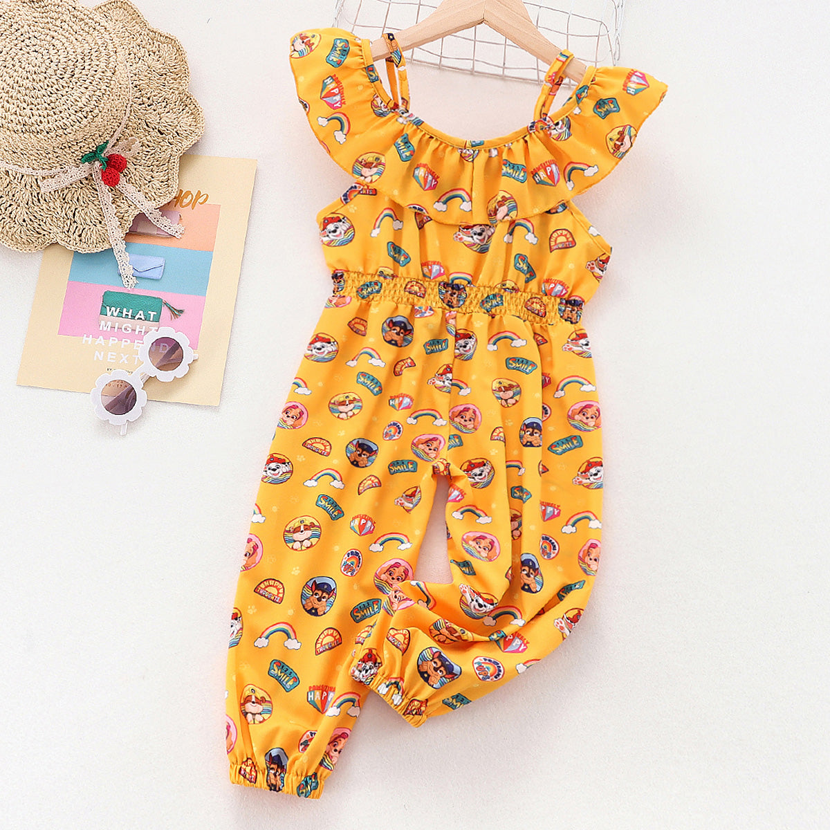 hibobi x PAW Patrol Toddler Girls Casual Printing Cartoon Ruffle Overalls Wholesale
