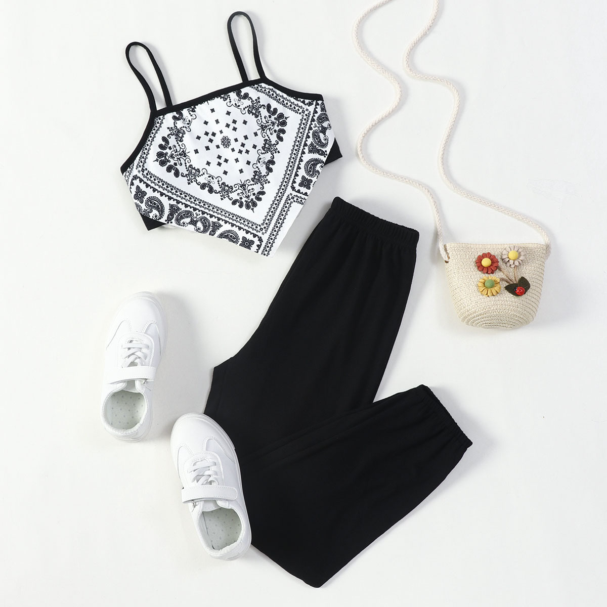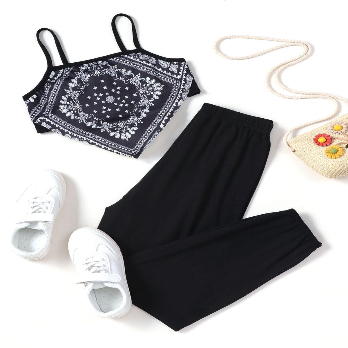 Kids Girls Boho Suspenders Top& Solid Color Wweatpants Suit Wholesale