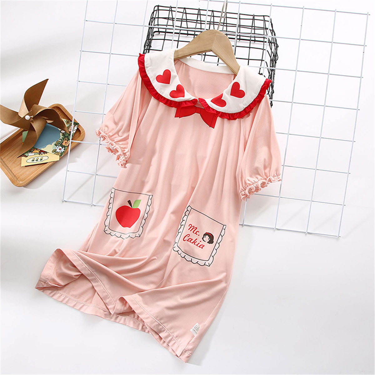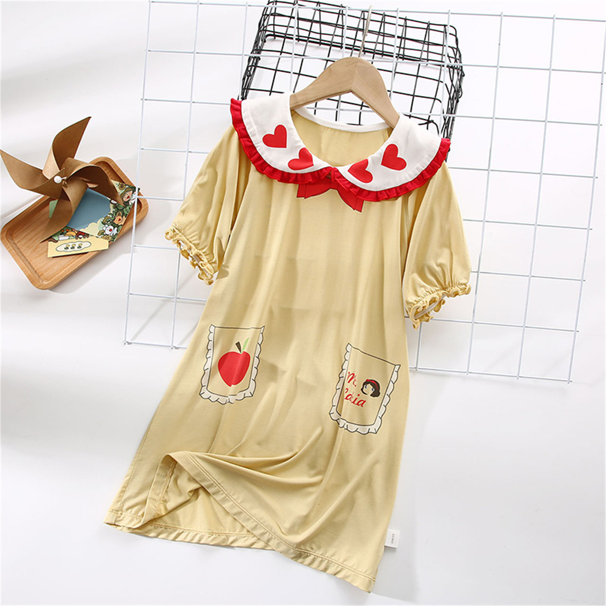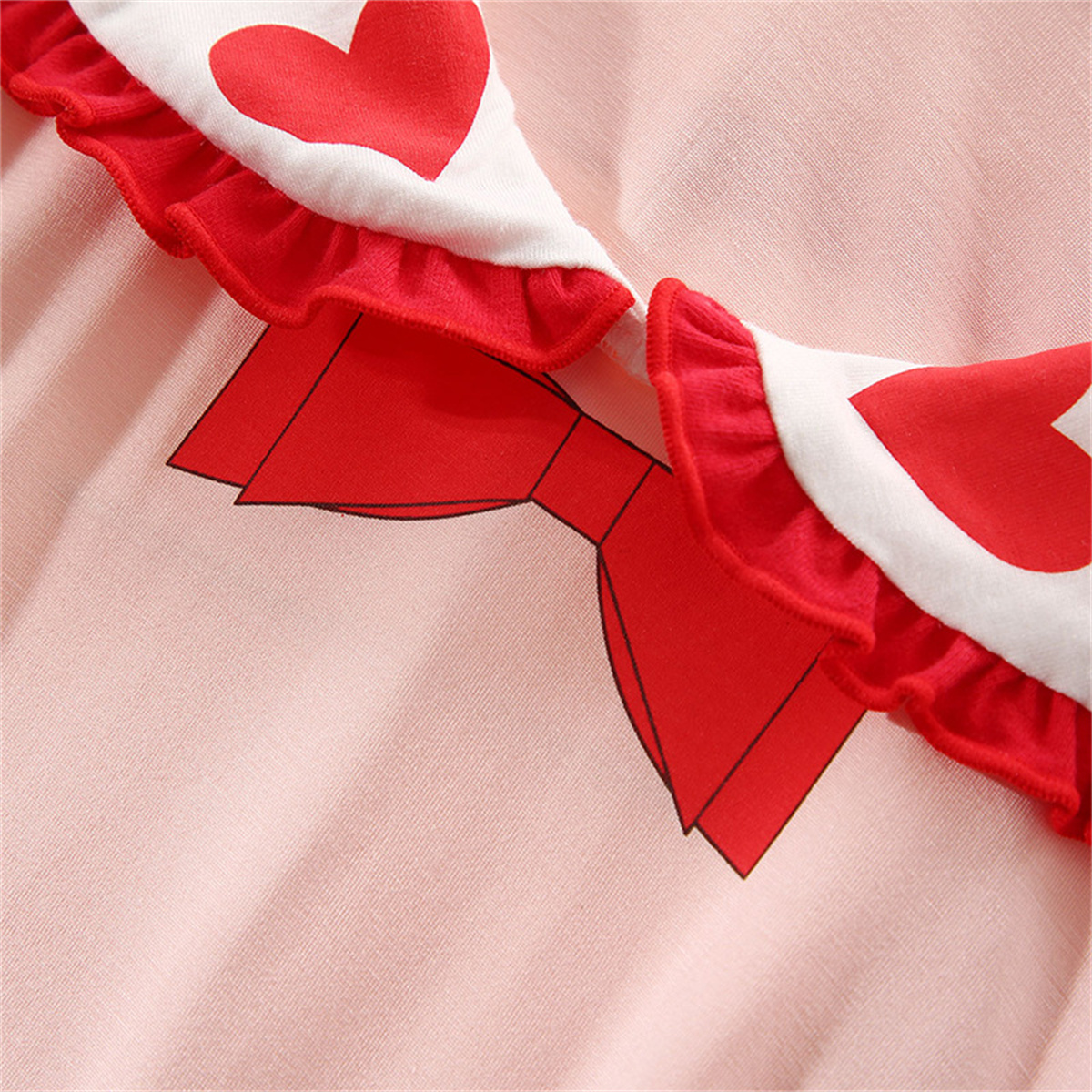 Kids Girls Summer Sweet Cartoon Color-block Heart-shaped Bowknot Pajamas Dress Wholesale