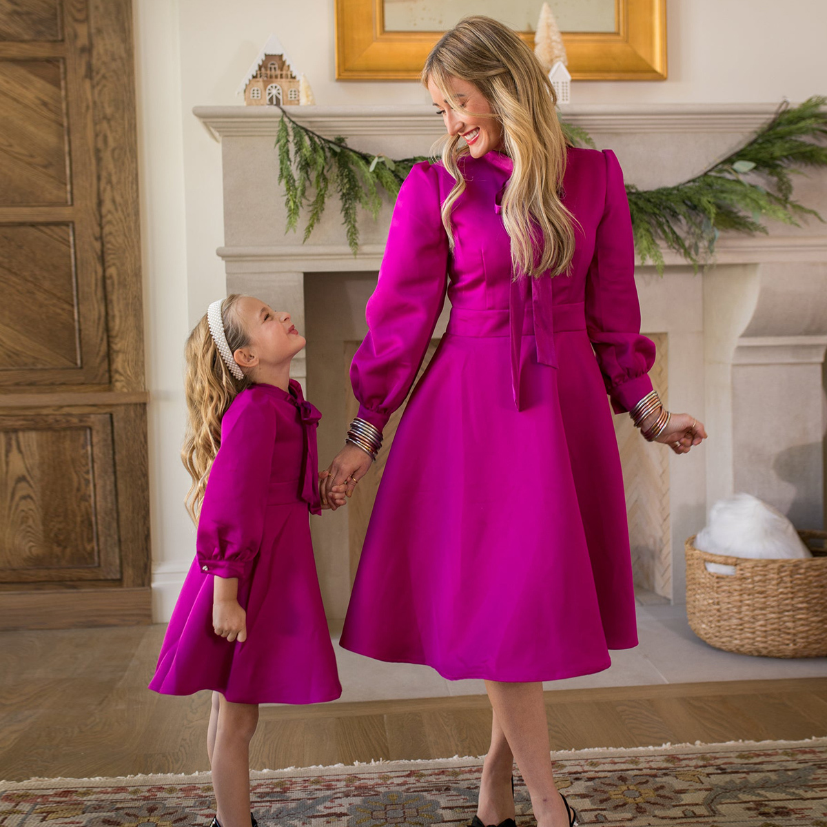 Sweet Solid Color Long Sleeve Dress for Mom and Me Wholesale