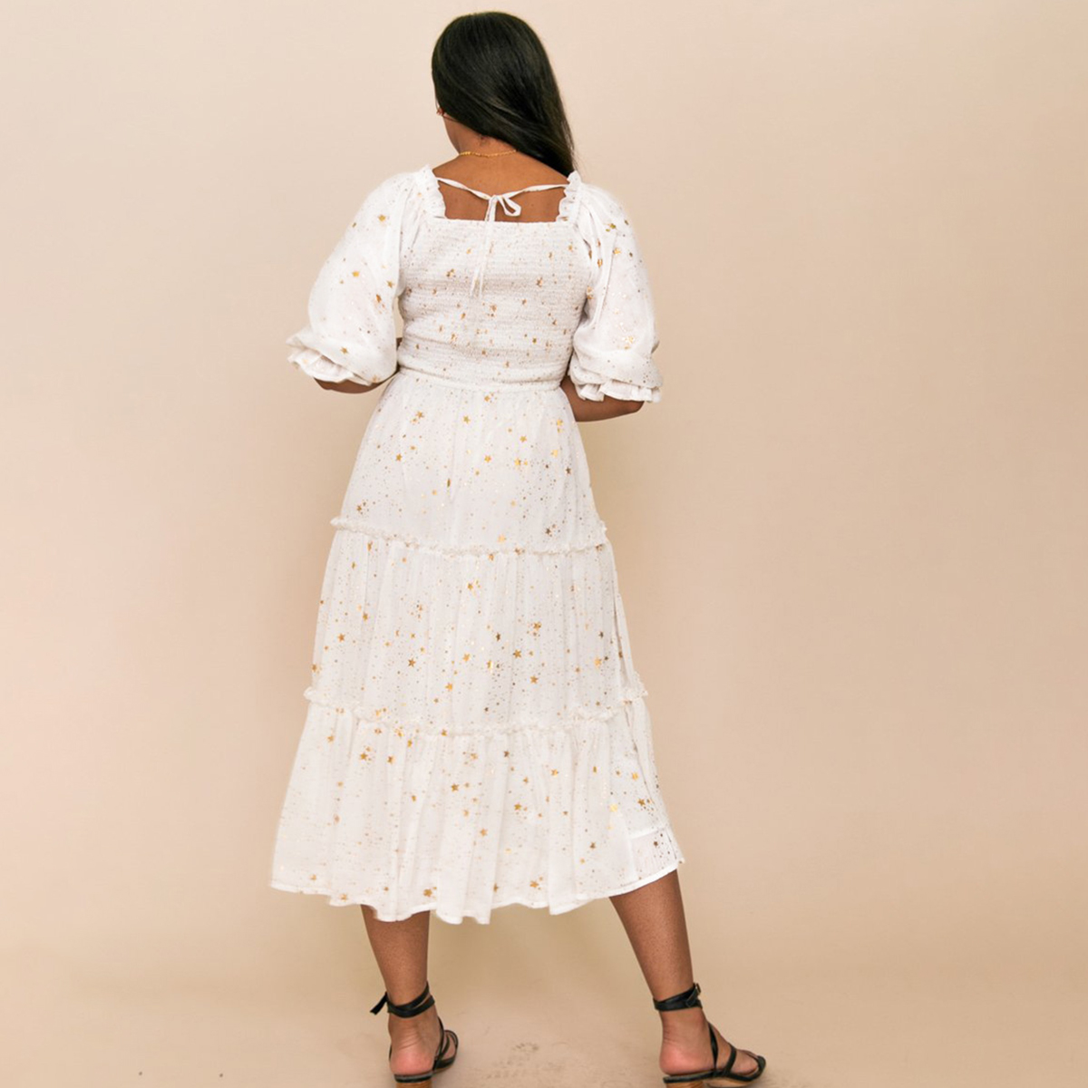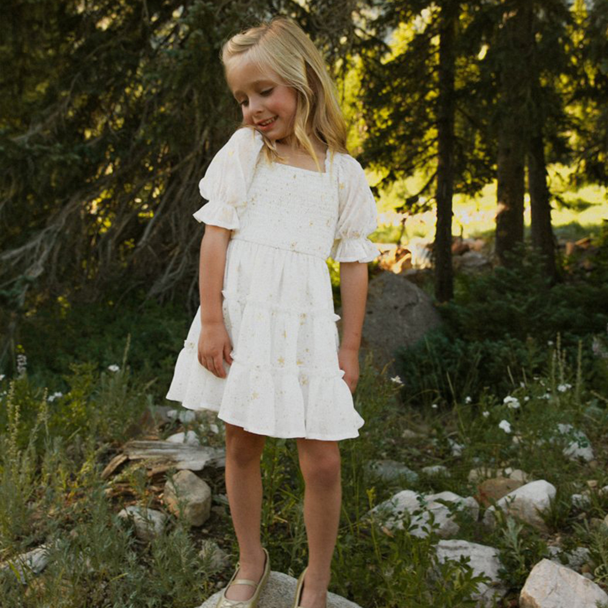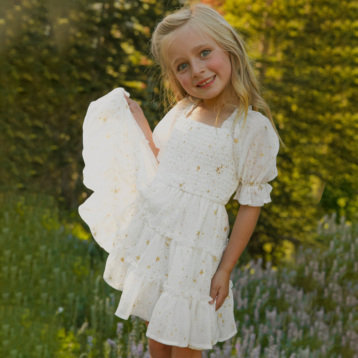Sweet Star Print Puff Sleeve Dress for Mom and Me Wholesale