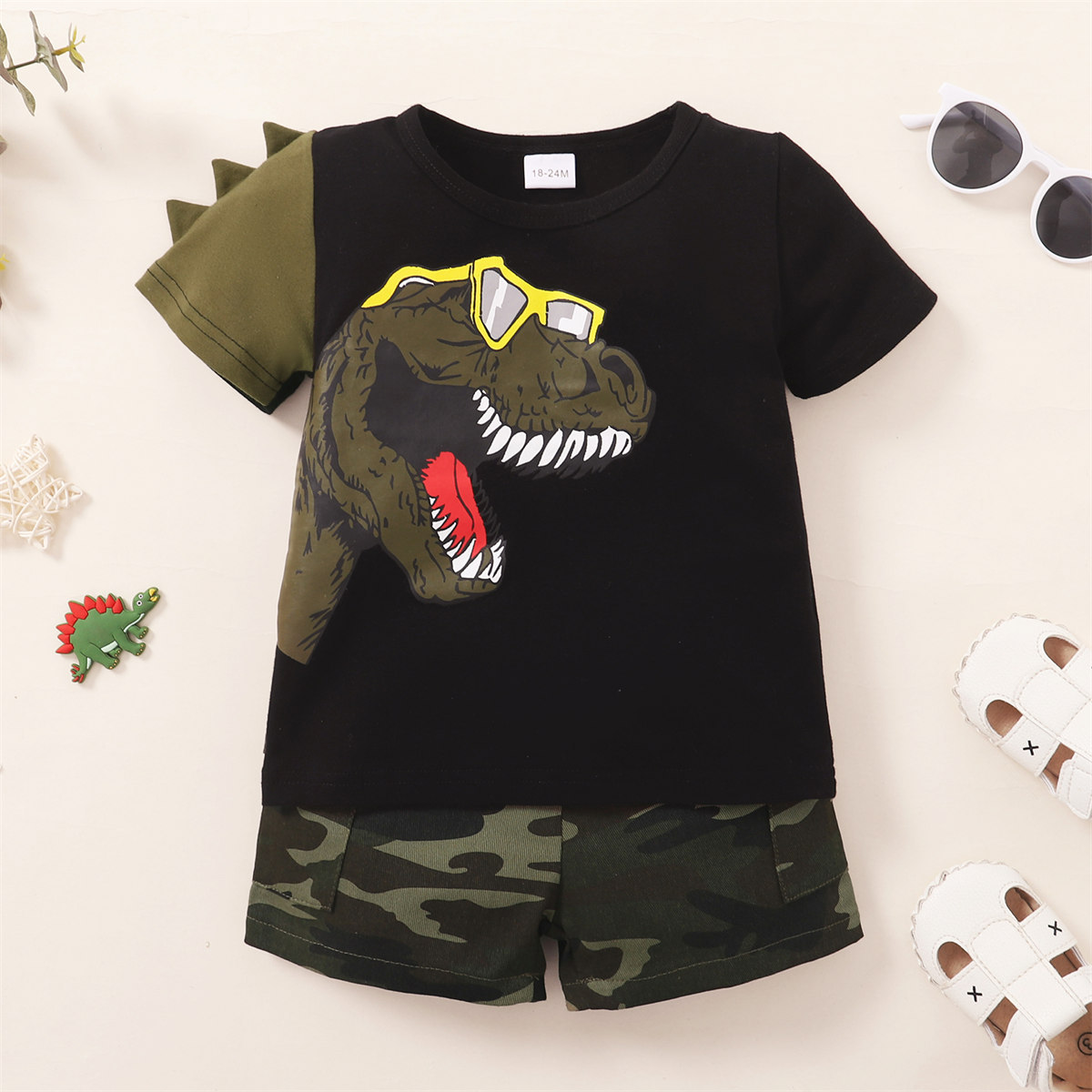 Toddler Boy Camouflage Dinosaur Top & Shorts Wholesale