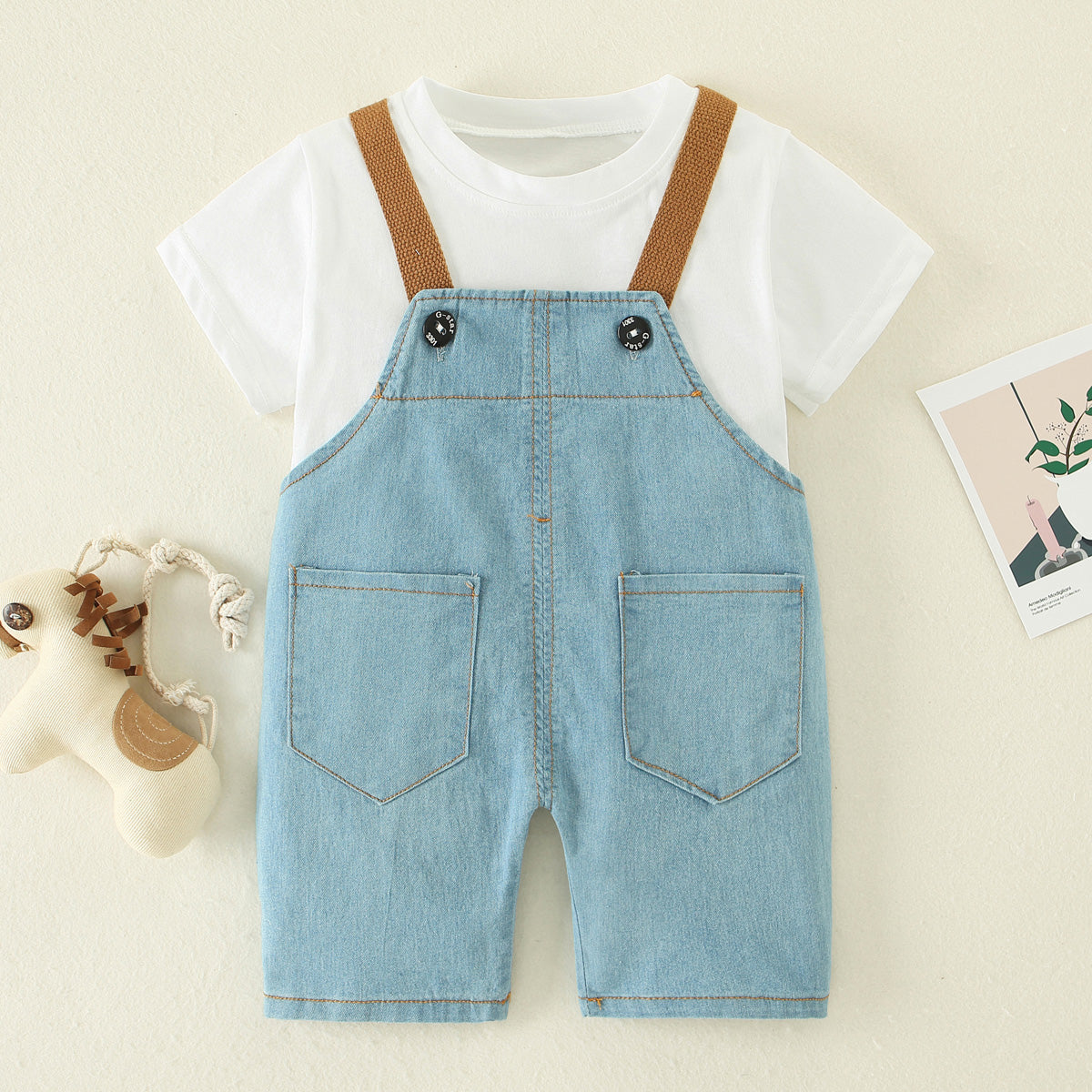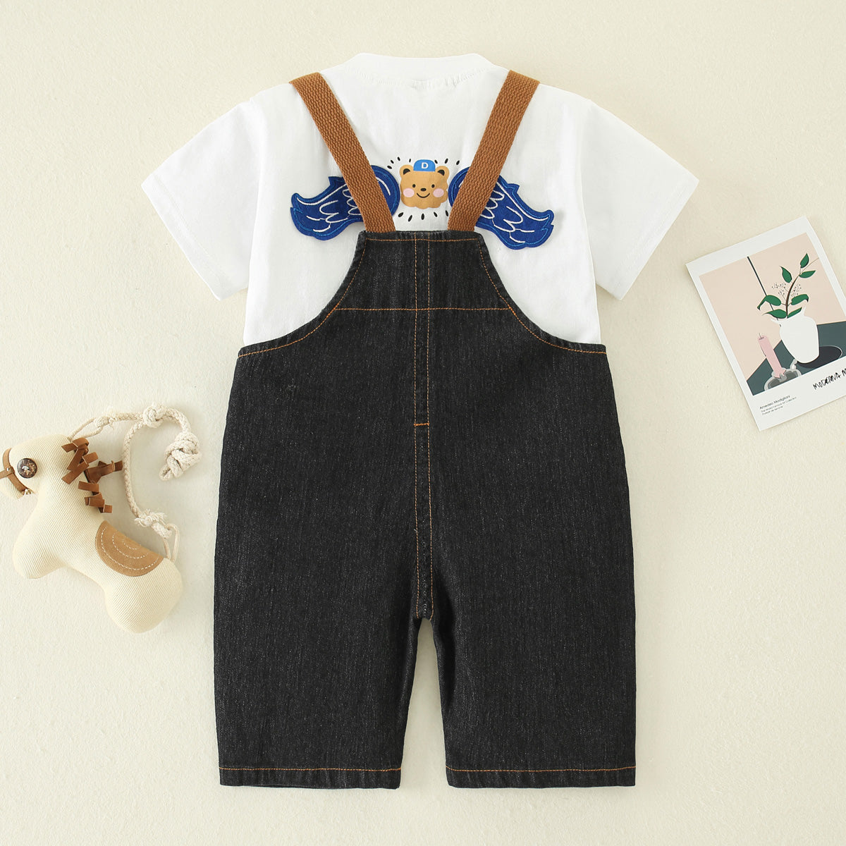 Toddler Boy Cartoon Pattern Short Sleeve T-shirt & Rompers Shorts Wholesale