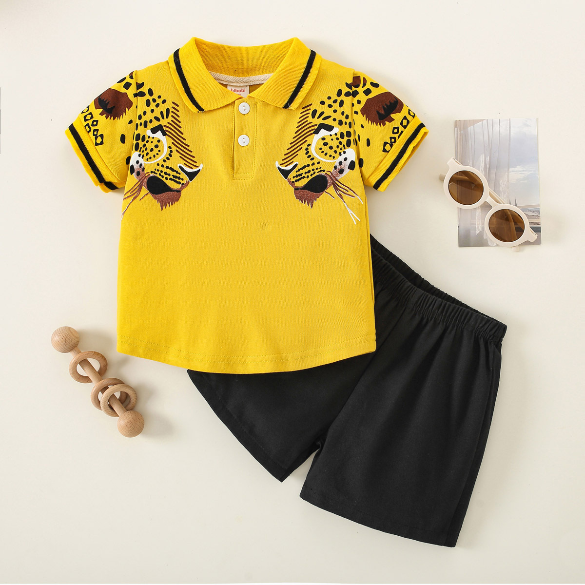 Toddler Boy Casual Leopard Cartoon Polo Shirt & Shorts Wholesale
