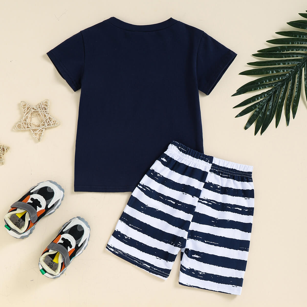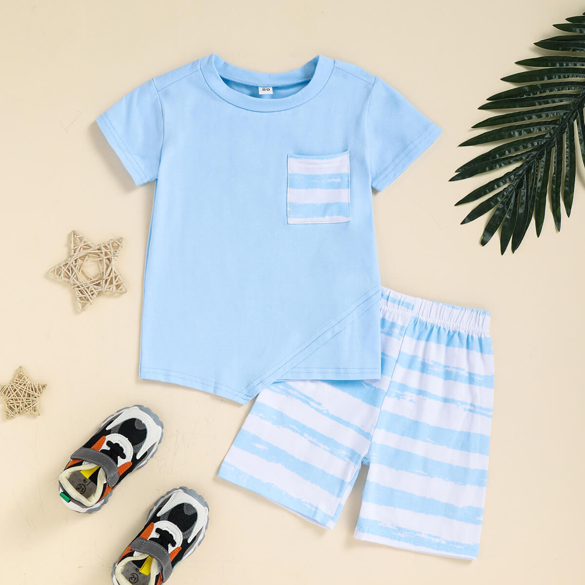 Toddler Boy Casual Striped Asymmetric T-shirt & Shorts Wholesale