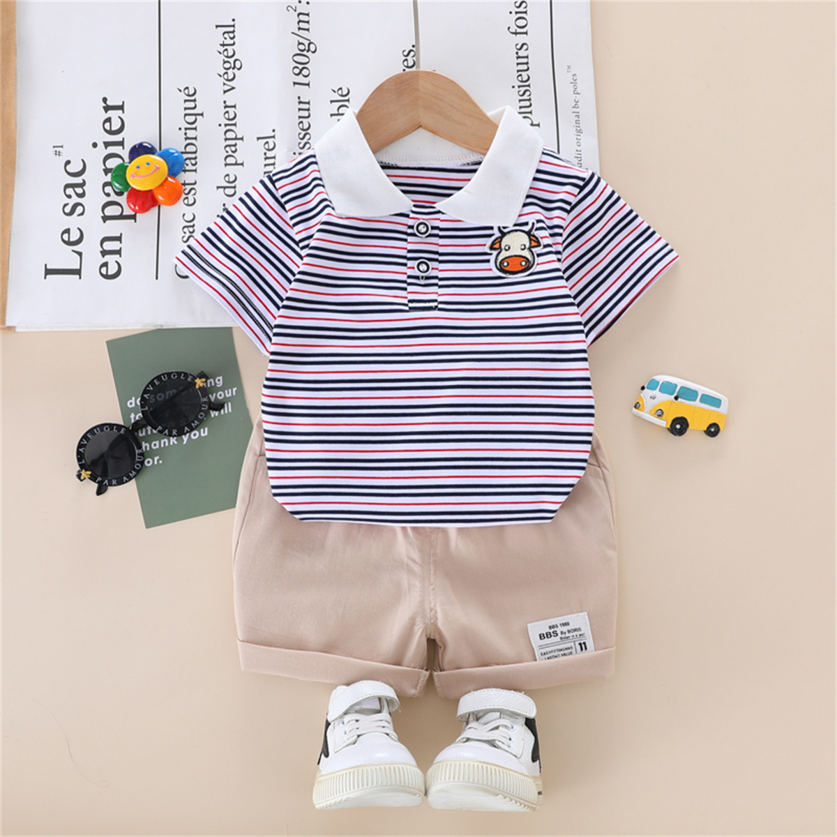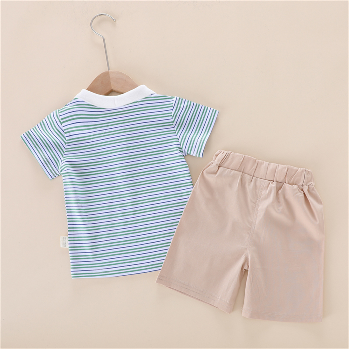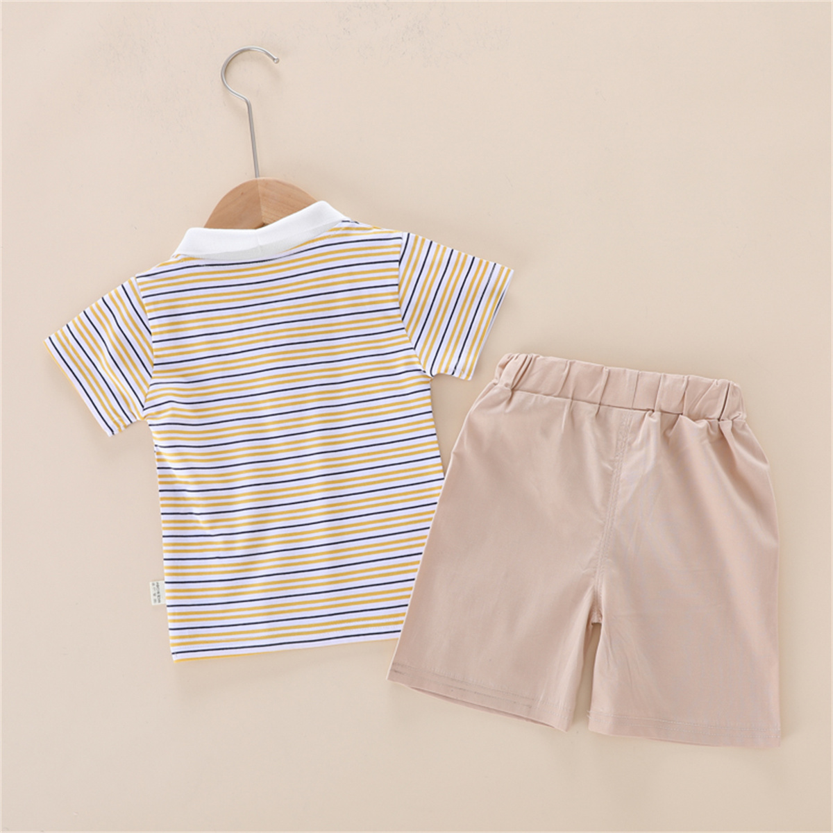 Toddler Boy Cattle Lapel Striped Color-block Top & Shorts Wholesale