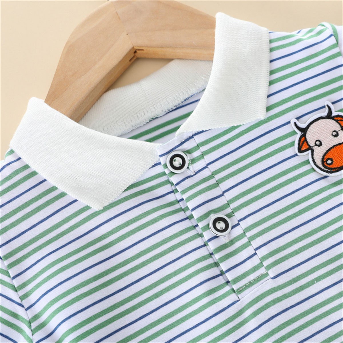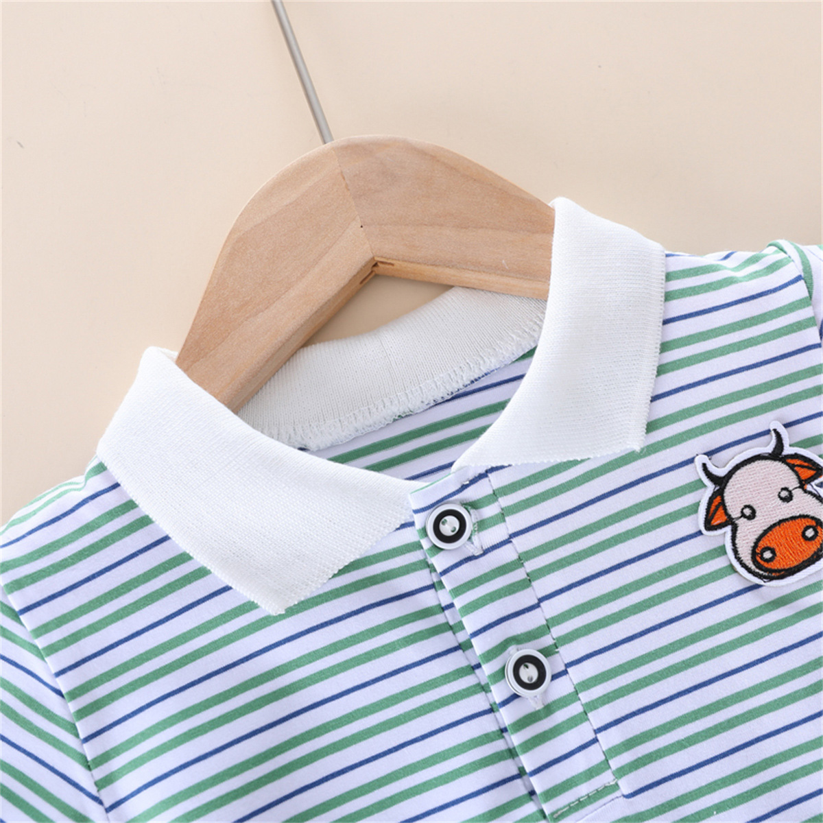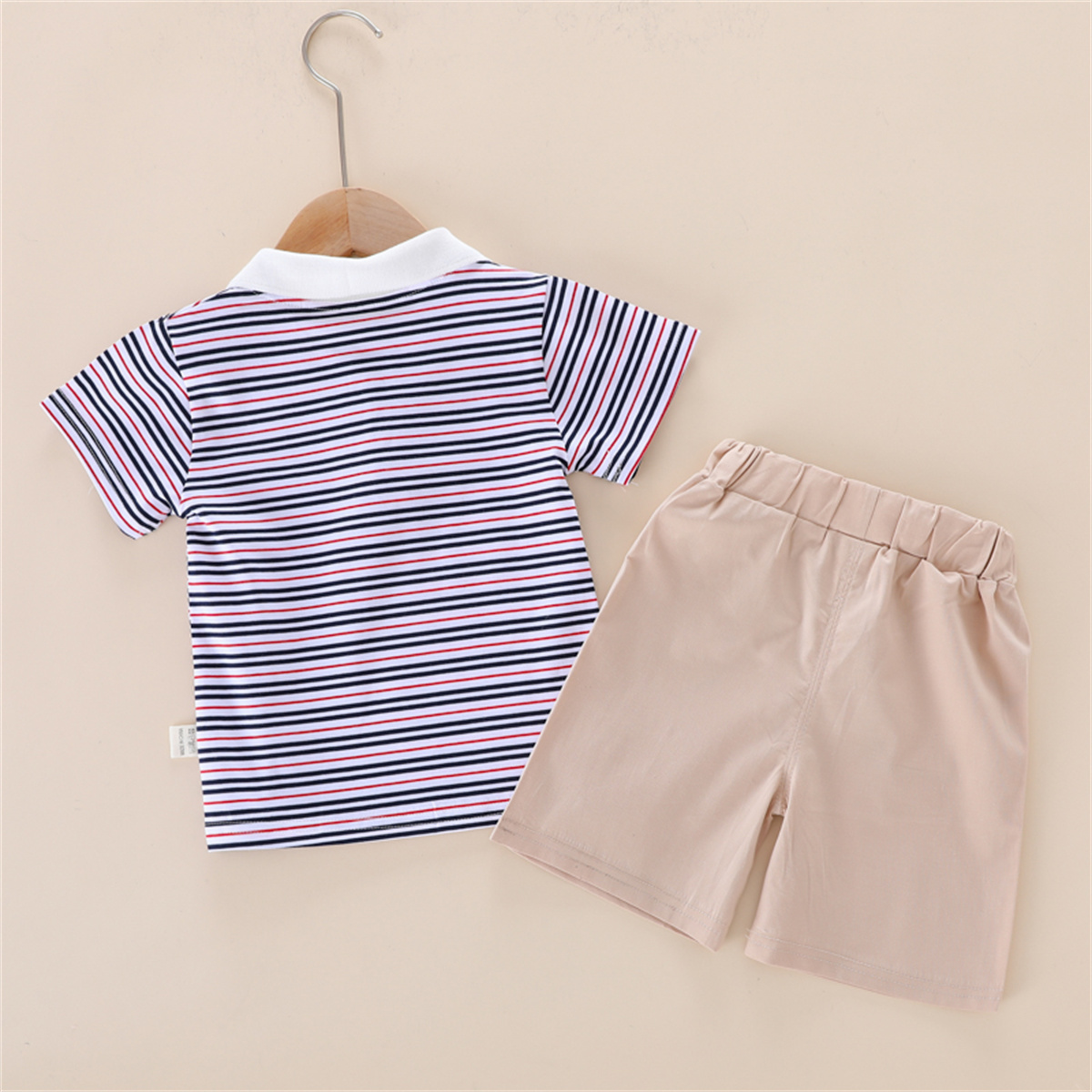 Toddler Boy Cattle Lapel Striped Color-block Top & Shorts Wholesale