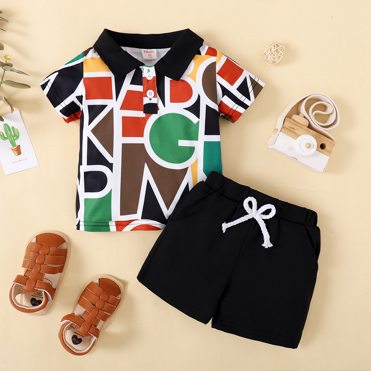 Toddler Boy Cotton Letter Color-block Top & Shorts Wholesale