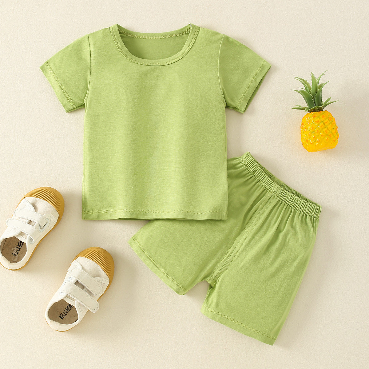 Toddler Boy Cotton Modal Solid Casual T-shirt & Shorts Pajamas Wholesale
