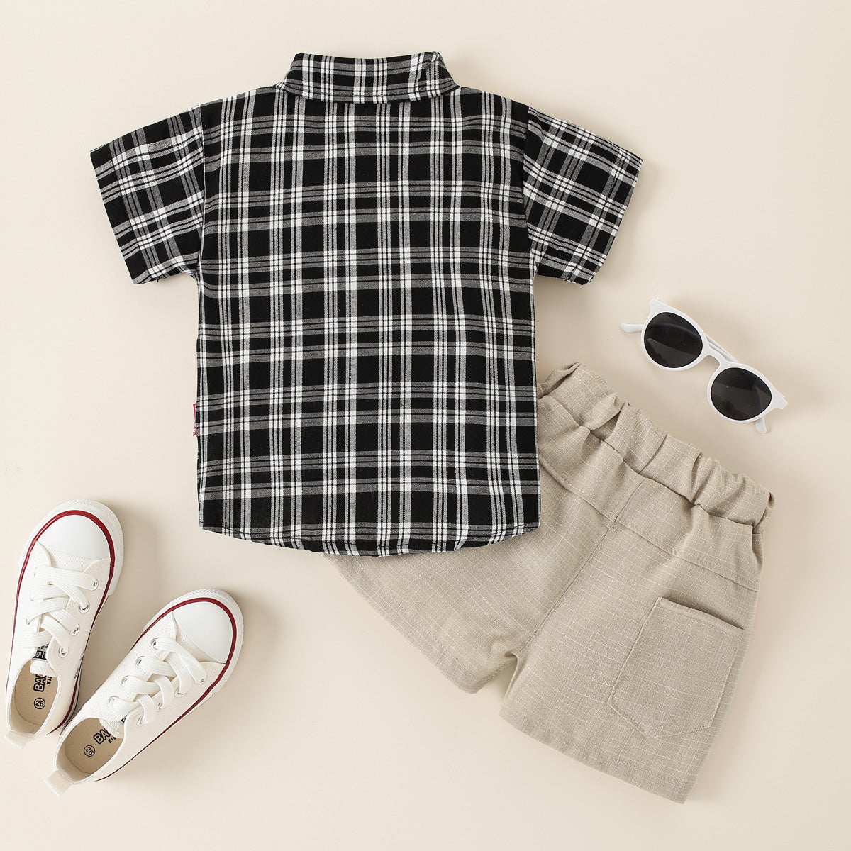 Toddler Boy Cotton Plaid Color-block Top & Shirt & Shorts Wholesale