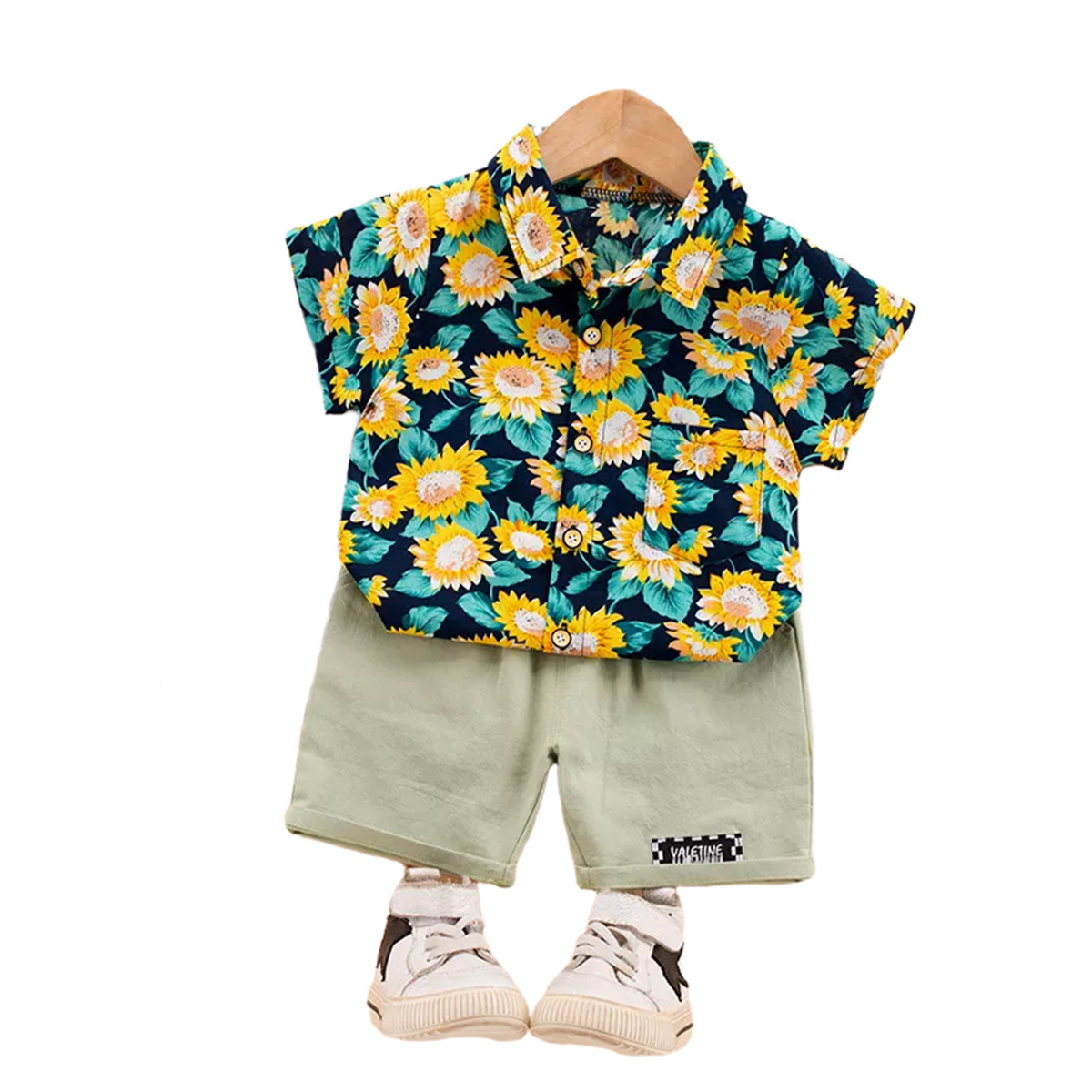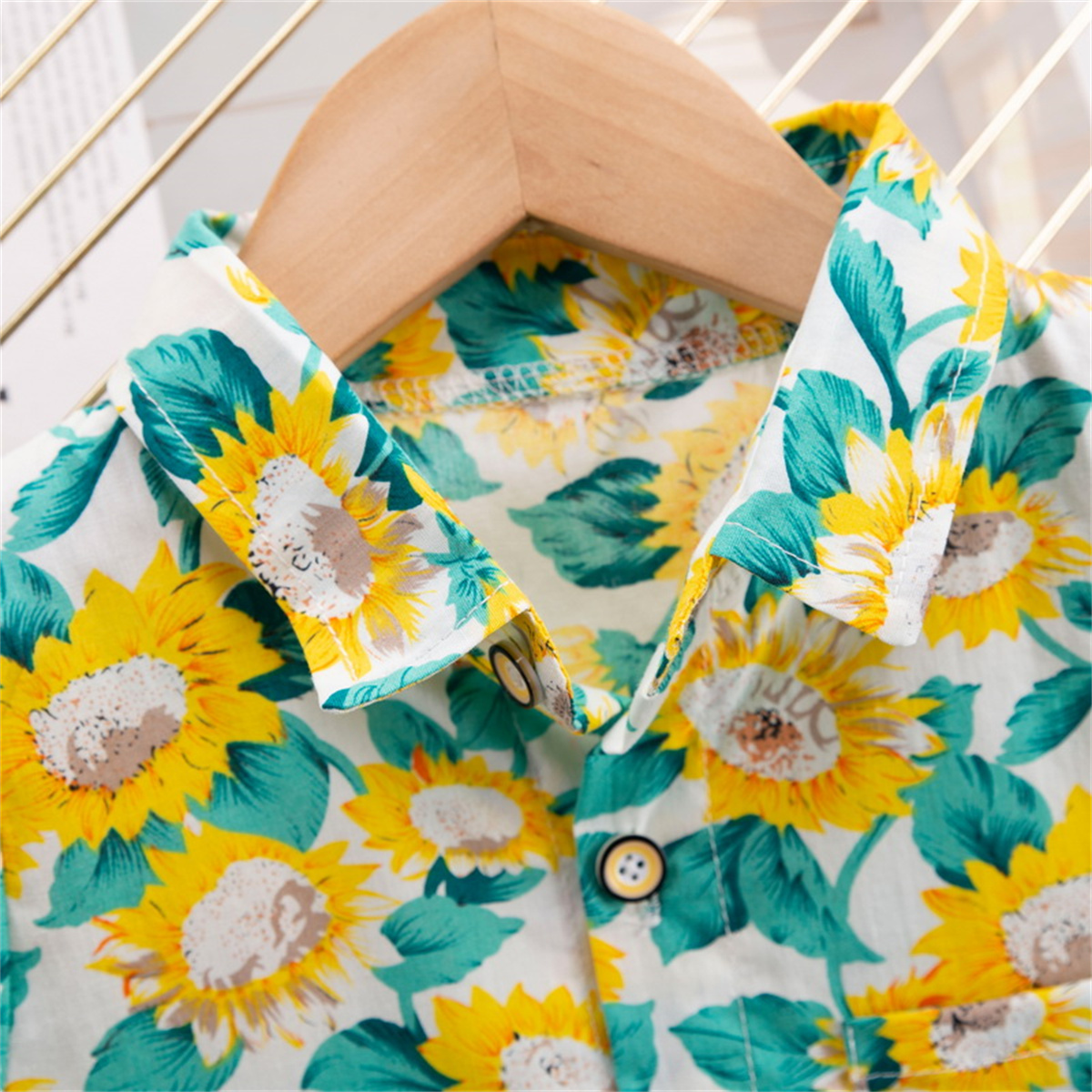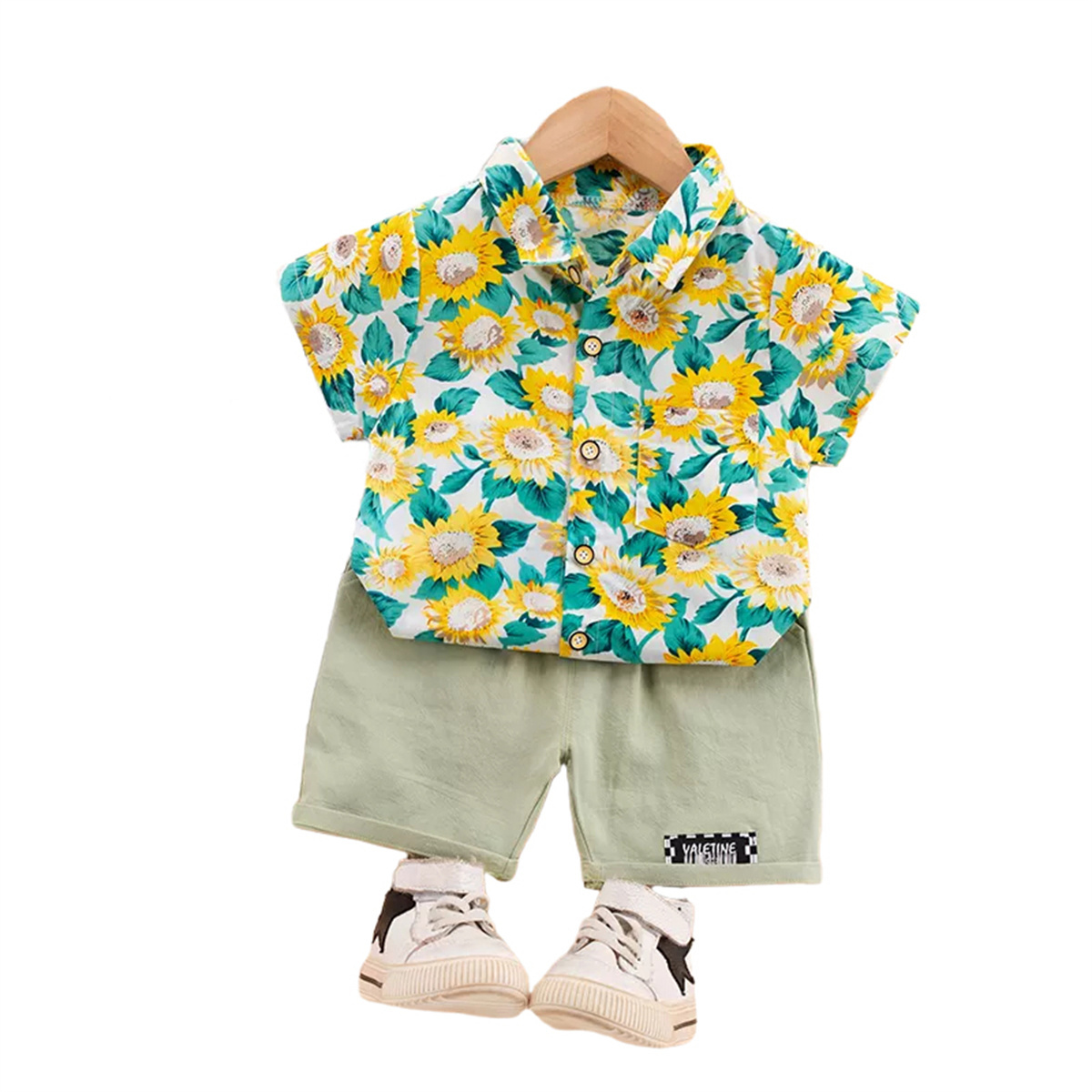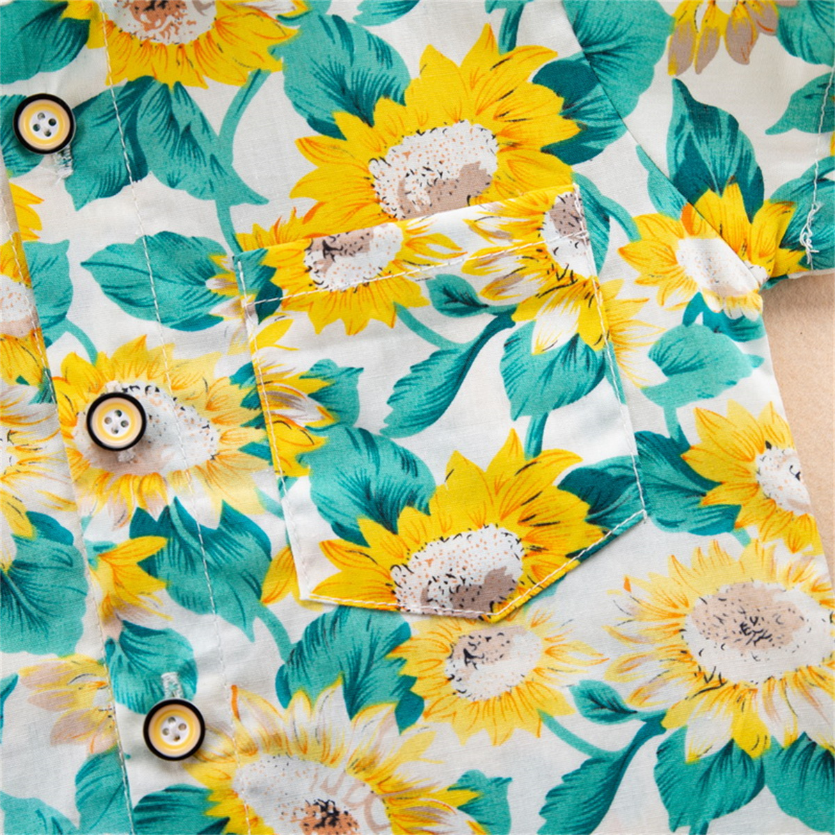 Toddler Boy Lapel Single-breasted Print Floral Sunflower Top & Shorts Wholesale