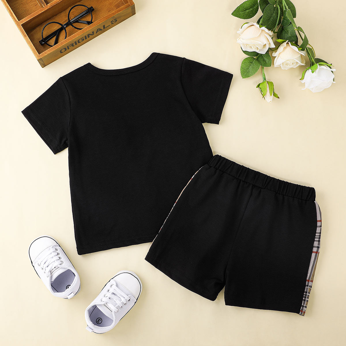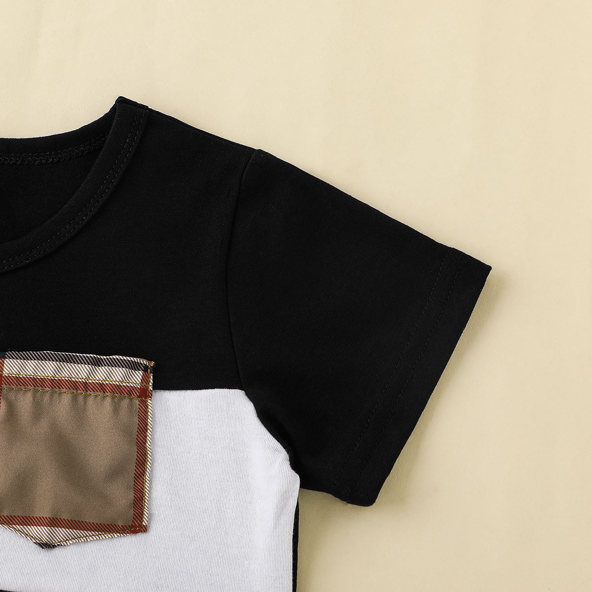 Toddler Boy Plaid Fabric Blocking Casual T-shirt & Shorts Wholesale