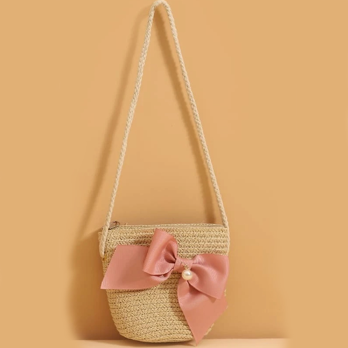 Toddler Girl 2-Pieces Pearl Bow Straw Hat Wholesale