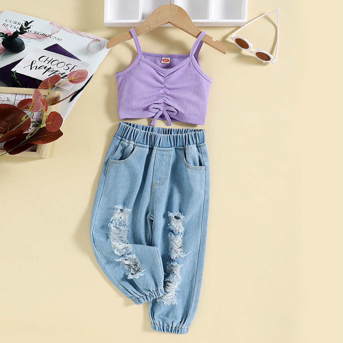 Toddler Girl Casual Solid Color Vest Top & Jeans Wholesale