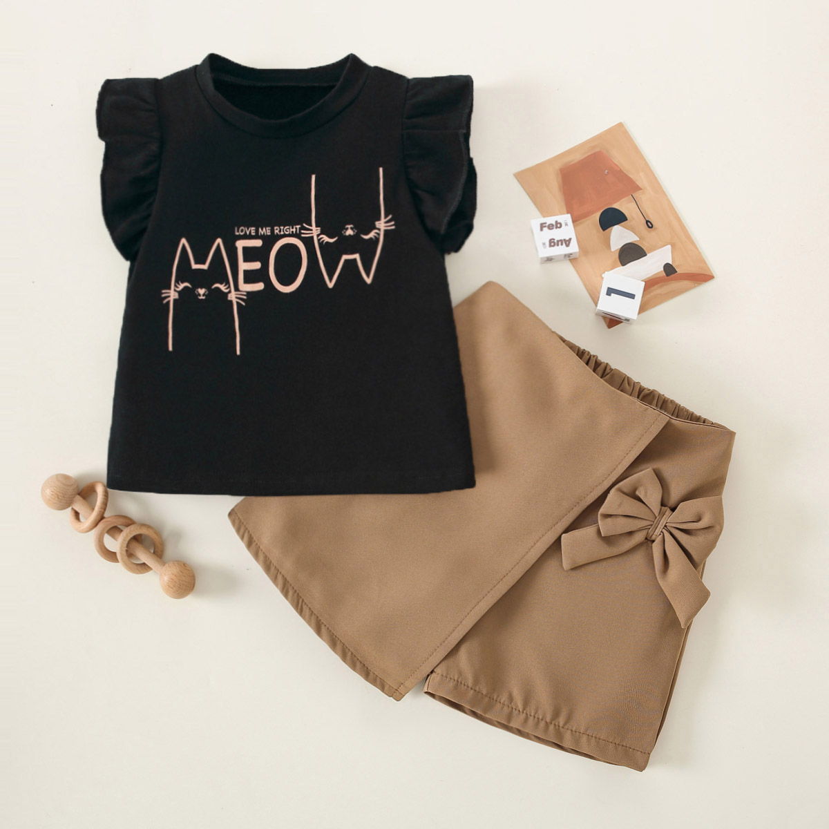 Toddler Girl Eleguard Cartoon Bow Knot Decor Tank Top & Shorts Wholesale