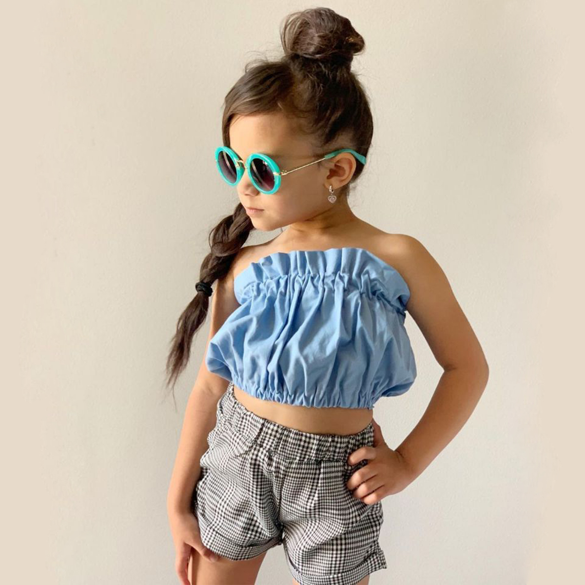 Toddler Girl Fashion Sexy Plaid Strapless & Shorts Wholesale