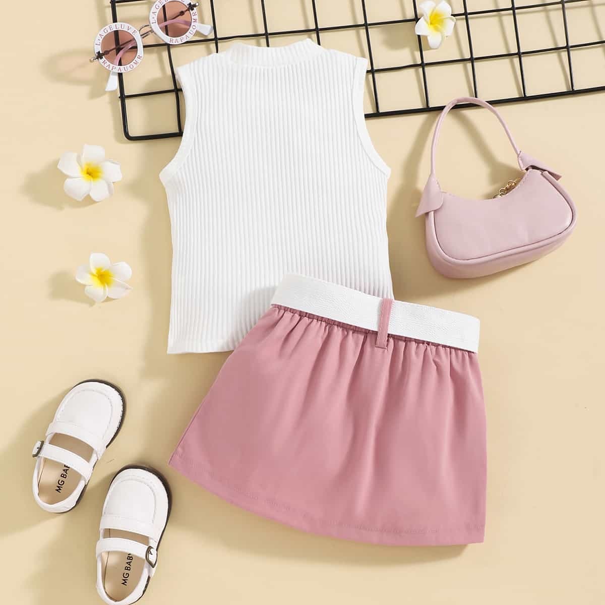 Toddler Girl Ribbed Solid Sleeve Daily Plaid Top & A-line skirt Wholesale