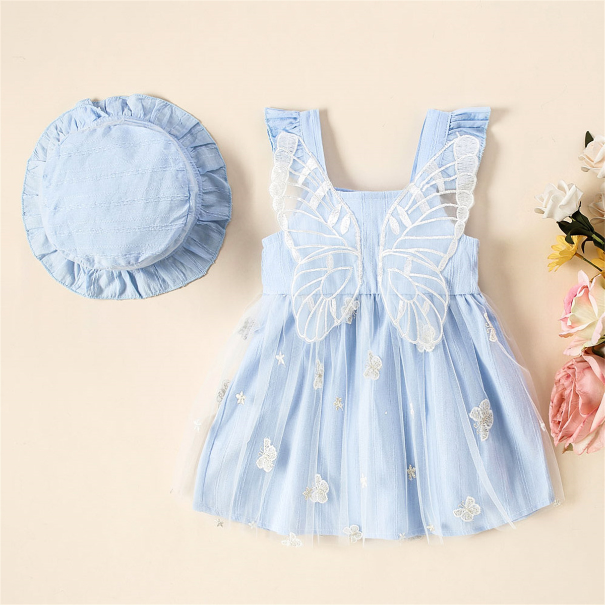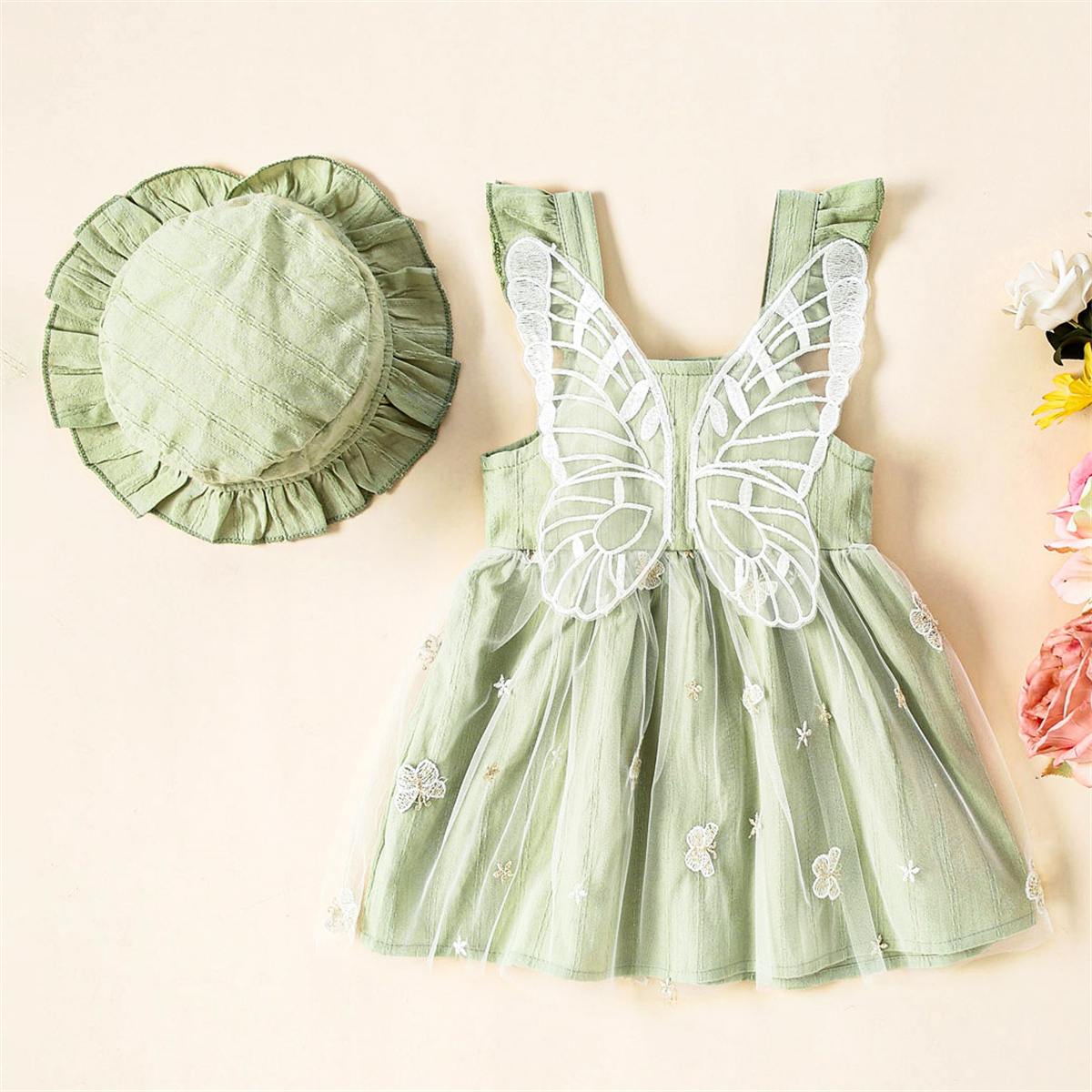 Toddler Girl Simulated Butterfly Dress & Hat Wholesale
