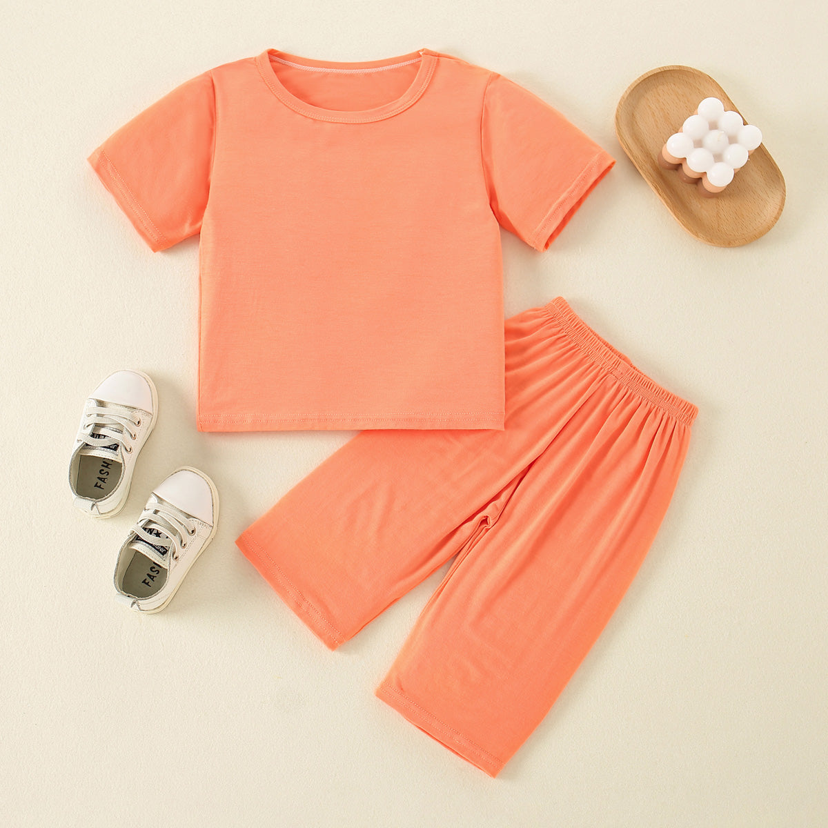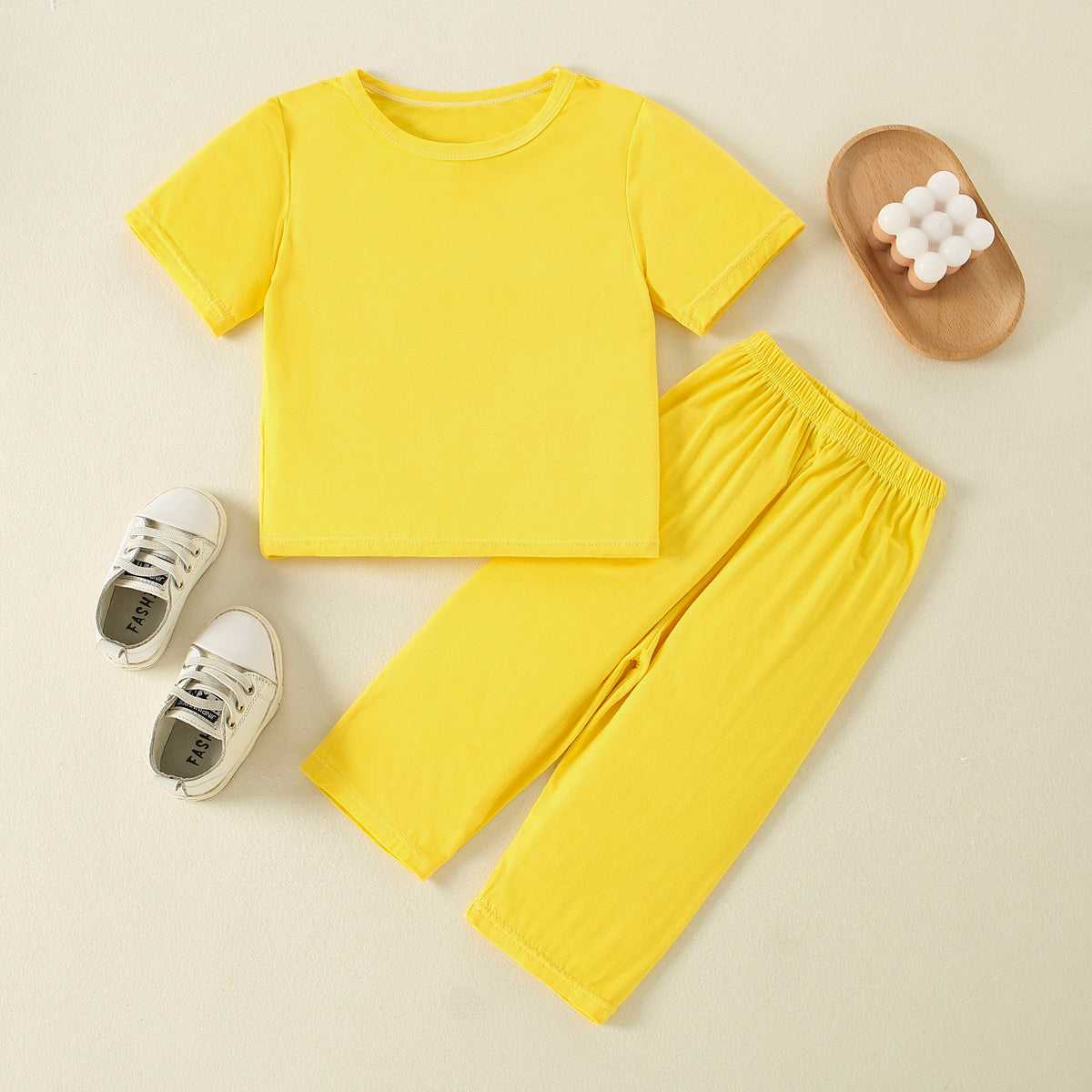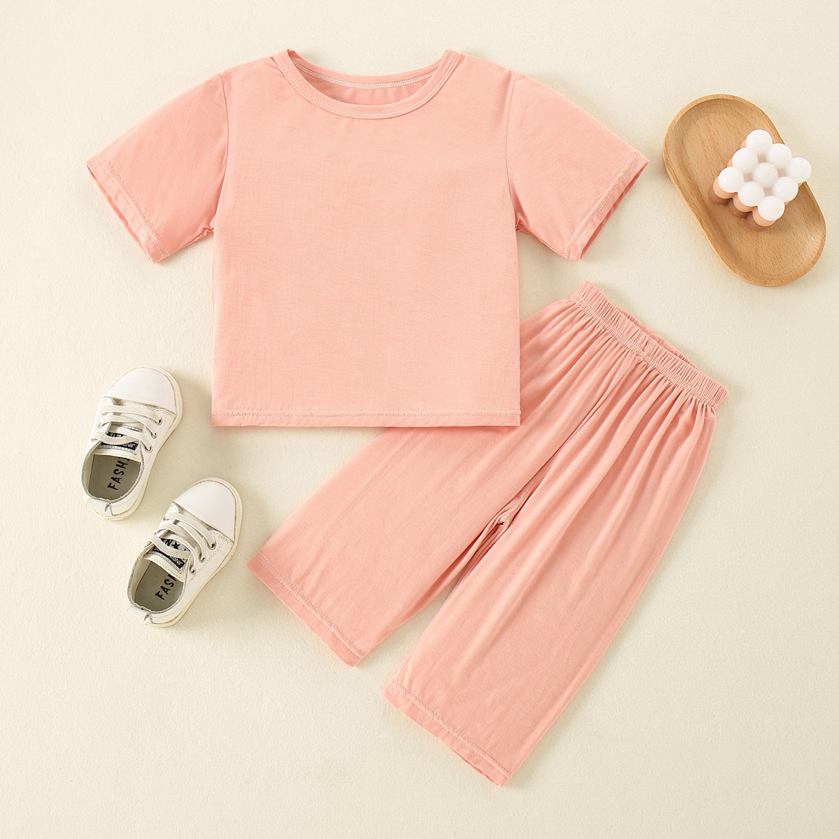 Toddler Girl Solid Casual T-shirt & Trousers Pajamas Wholesale