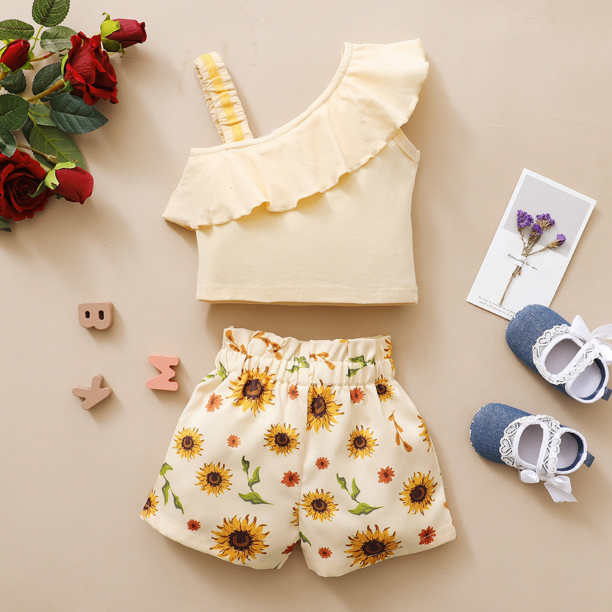 Toddler Girl Sunflower Pants Length Top & Shorts Wholesale