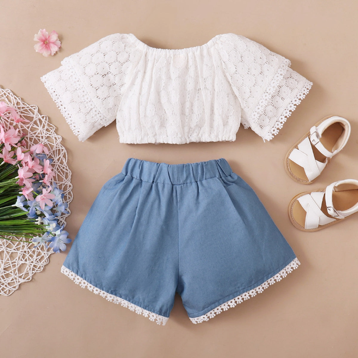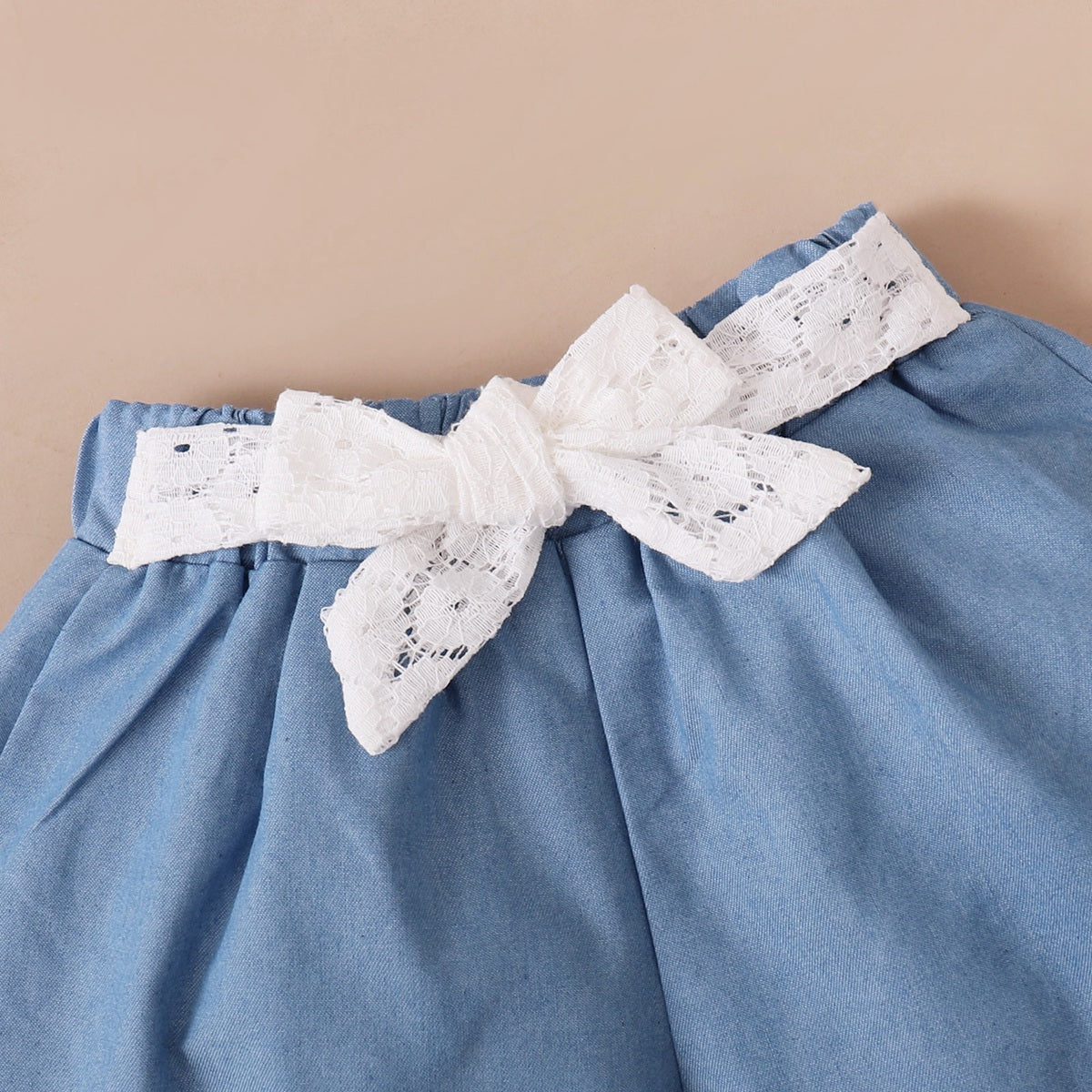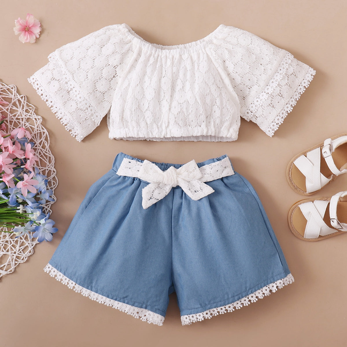 Toddler Girl Sweet Bow Knot Decor Lace T-shirt & Shorts Wholesale