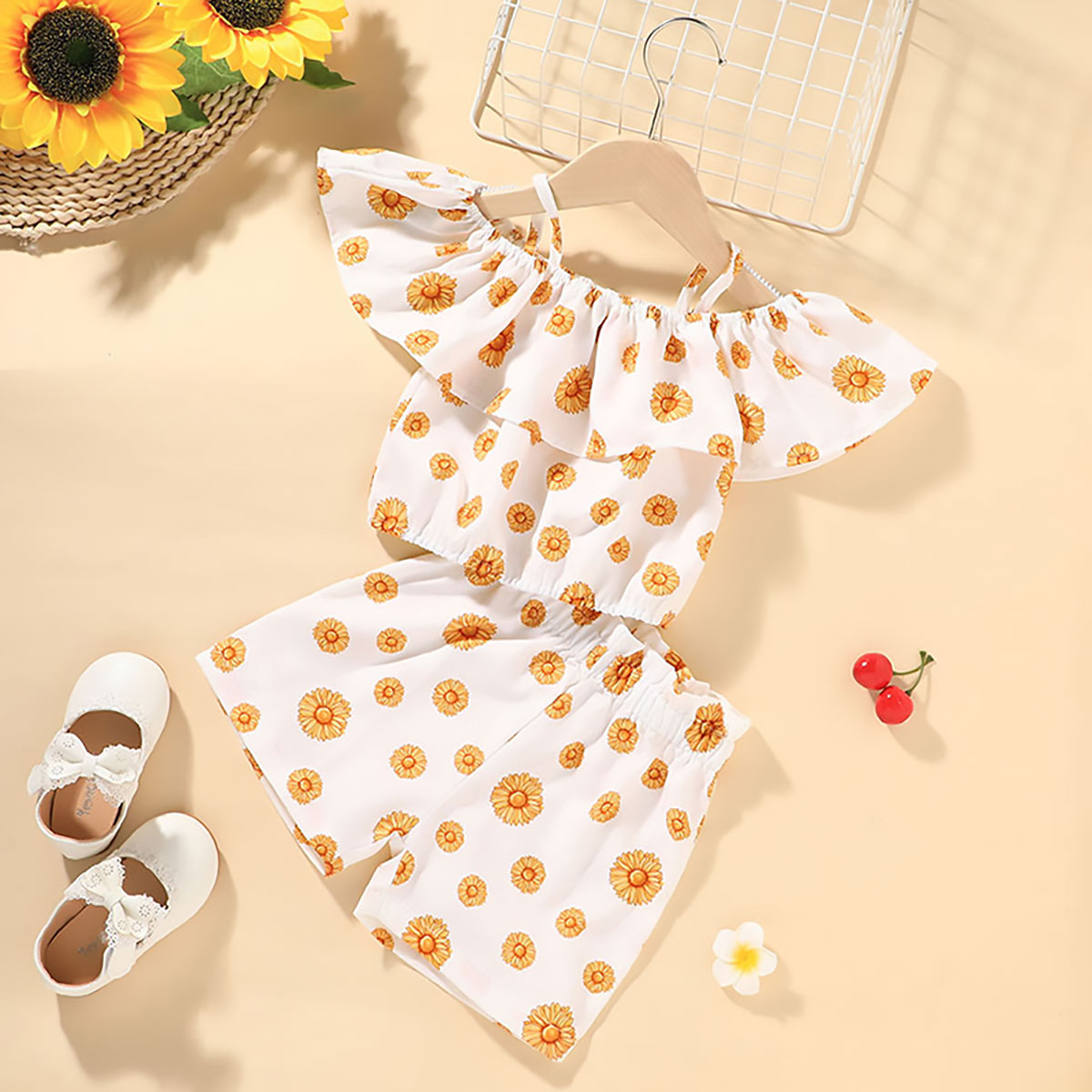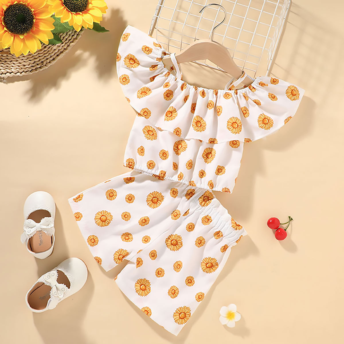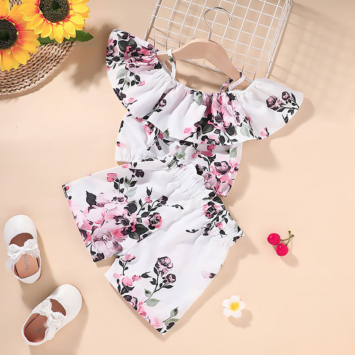 Toddler Girl Sweet Comfortable Ruffle T-shirt & Shorts Wholesale