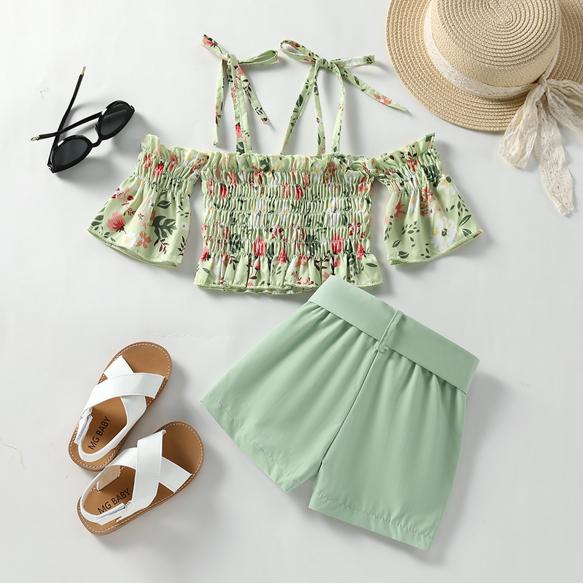 Toddler Girl Sweet Floral Cami Top & Shorts & Belt Wholesale