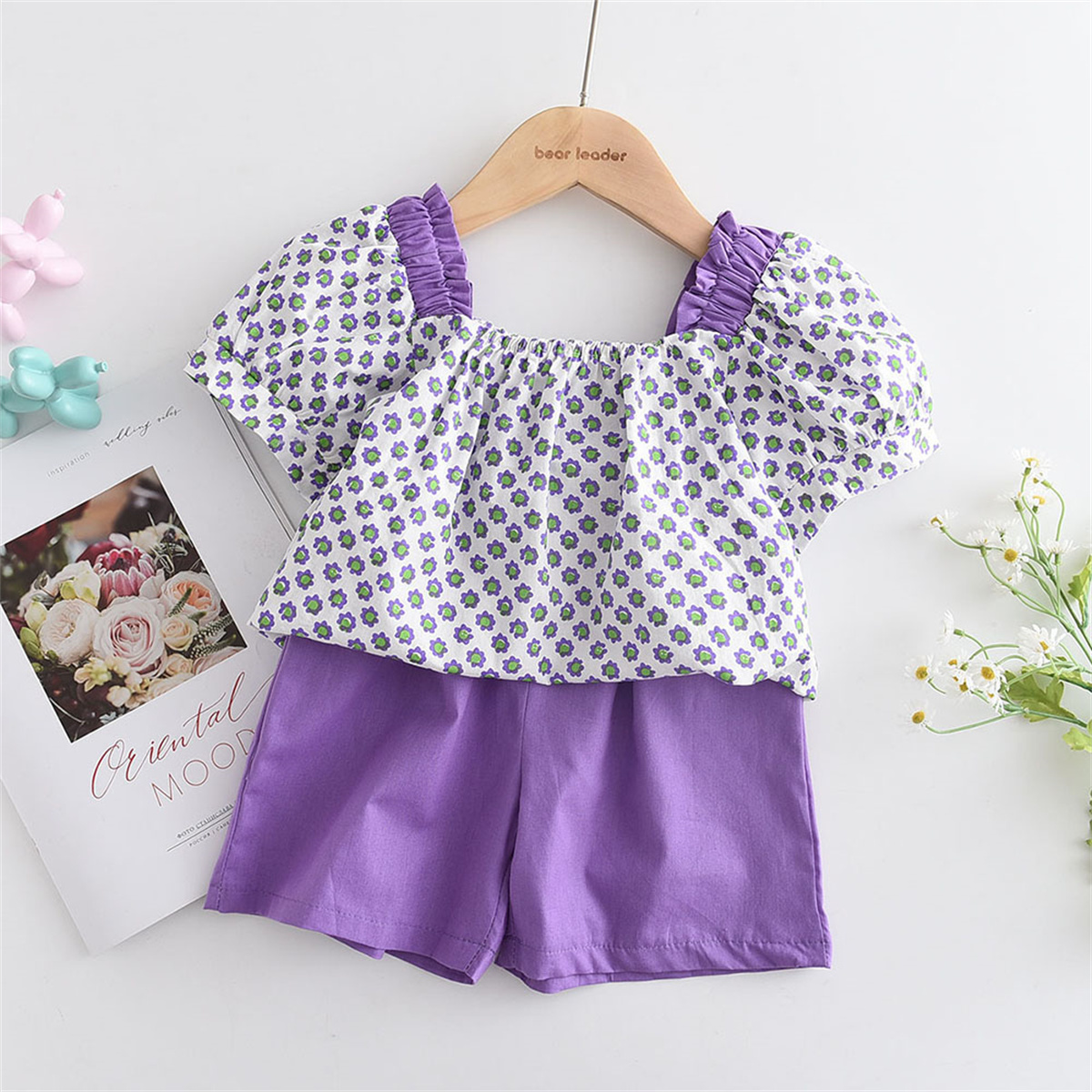 Toddler Girl Sweet Floral Square Collar Shirt & Shorts Wholesale