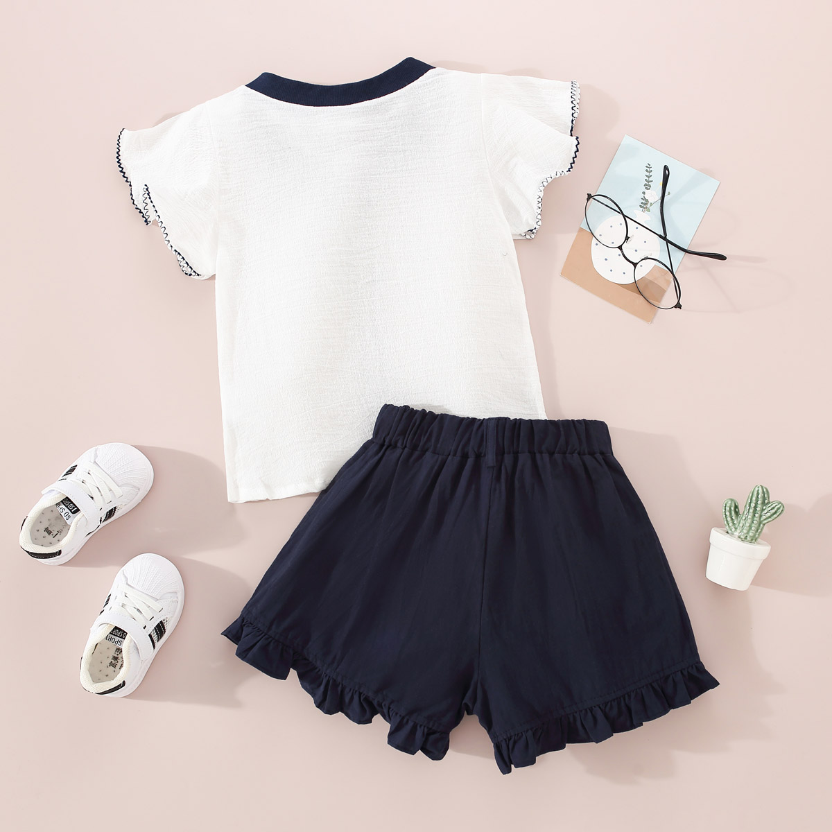Toddler Girls Casual Solid Color Ruffle Sleeve T-shirt & Shorts Wholesale