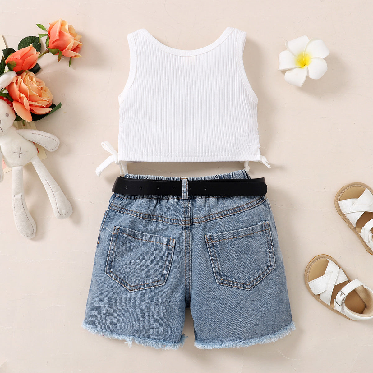 Toddler Girls Cotton Letter Solid Ribbed Top & Shorts Wholesale