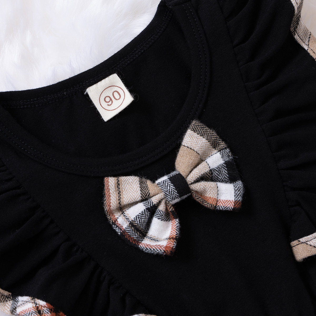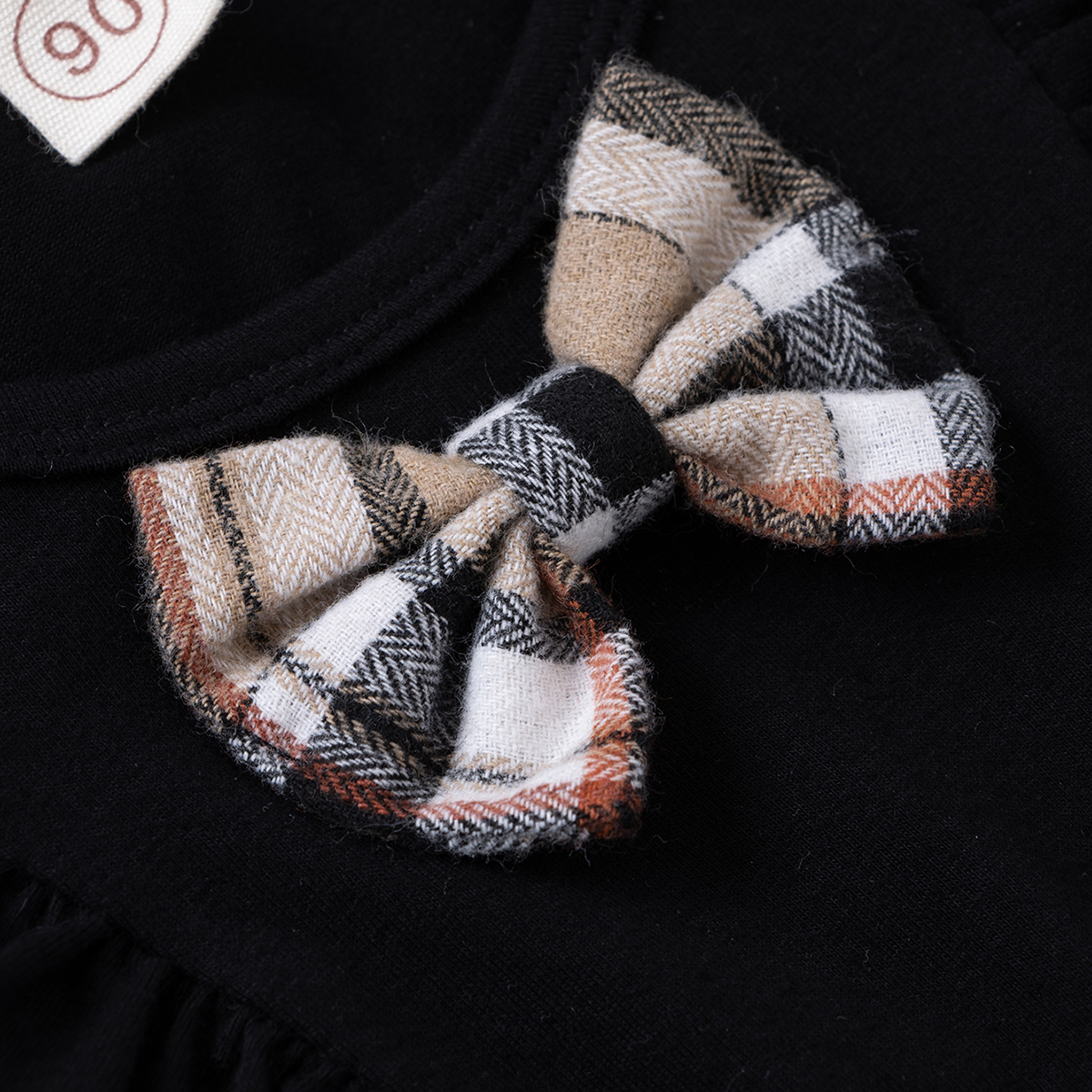 Toddler Girls Cotton Plaid Bowknot Patchwork Dress Wholesale