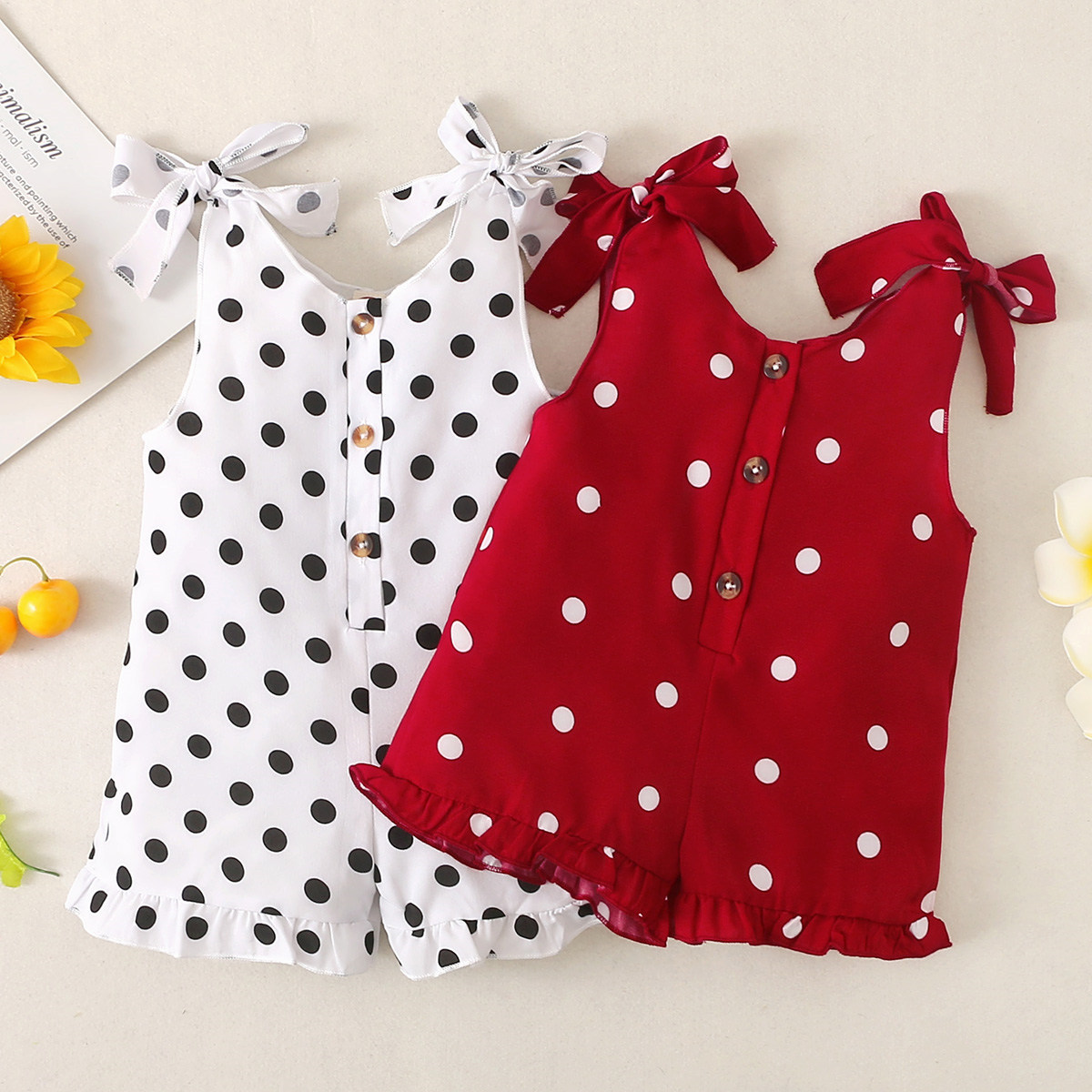 Toddler Girls Elegant Polka Dot Print Overalls Wholesale