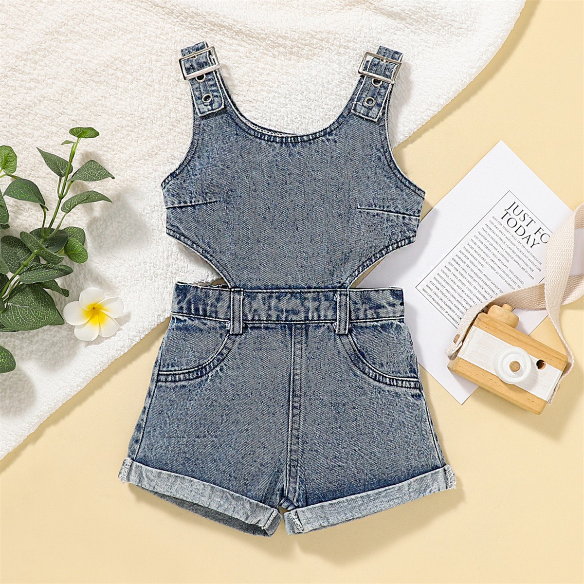 Toddler Girls Pocket Solid Color-block Hollow Out Overalls Wholesale