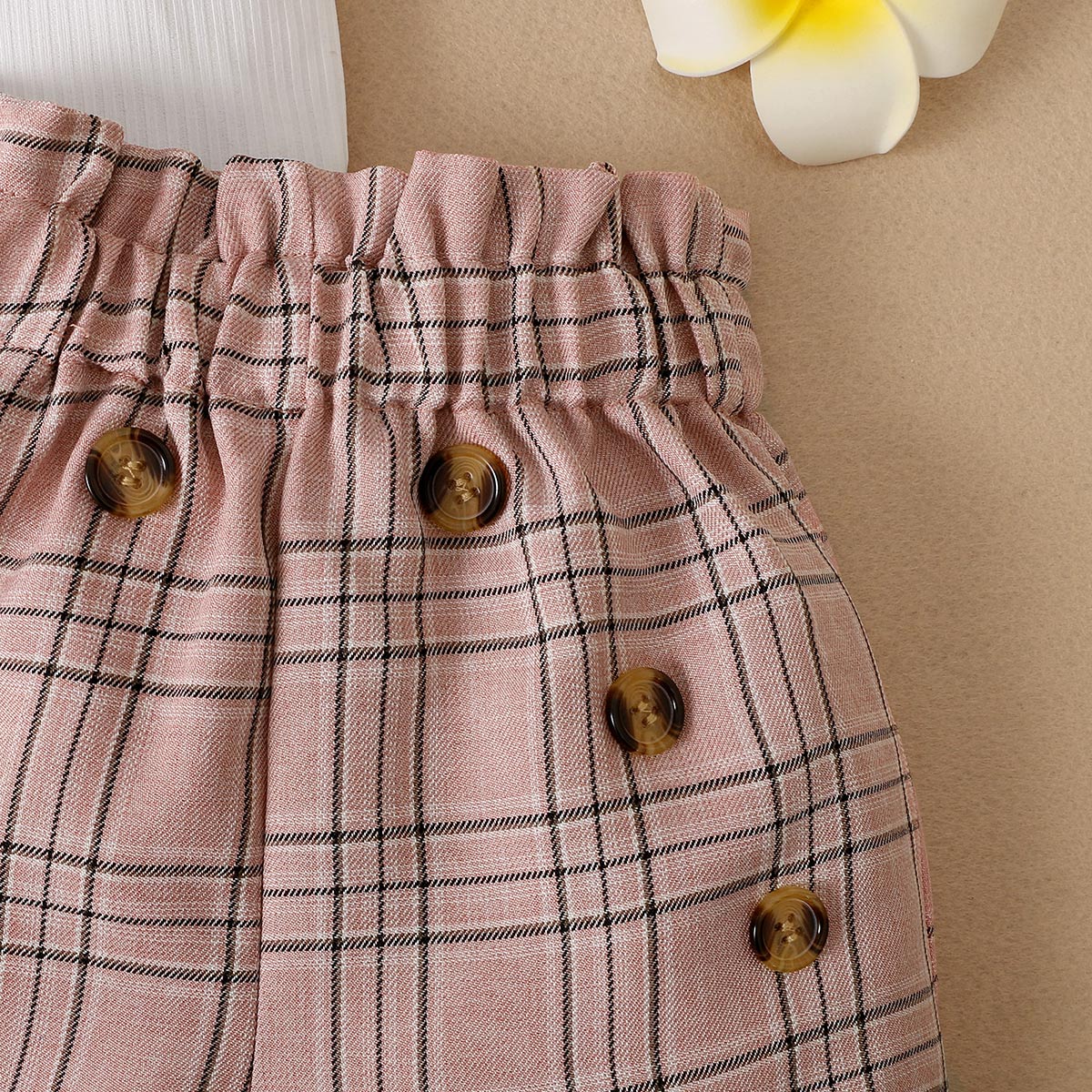 Toddler Girls Round Neck Plaid Solid Top & Shorts Wholesale