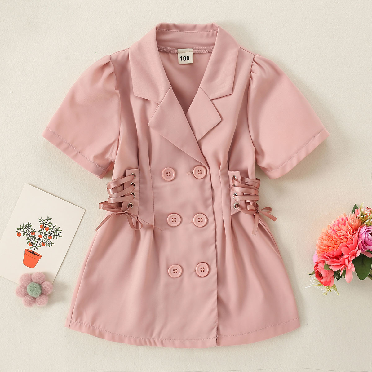 Toddler Girls Solid Edgy Color-block Lapel Dress Wholesale