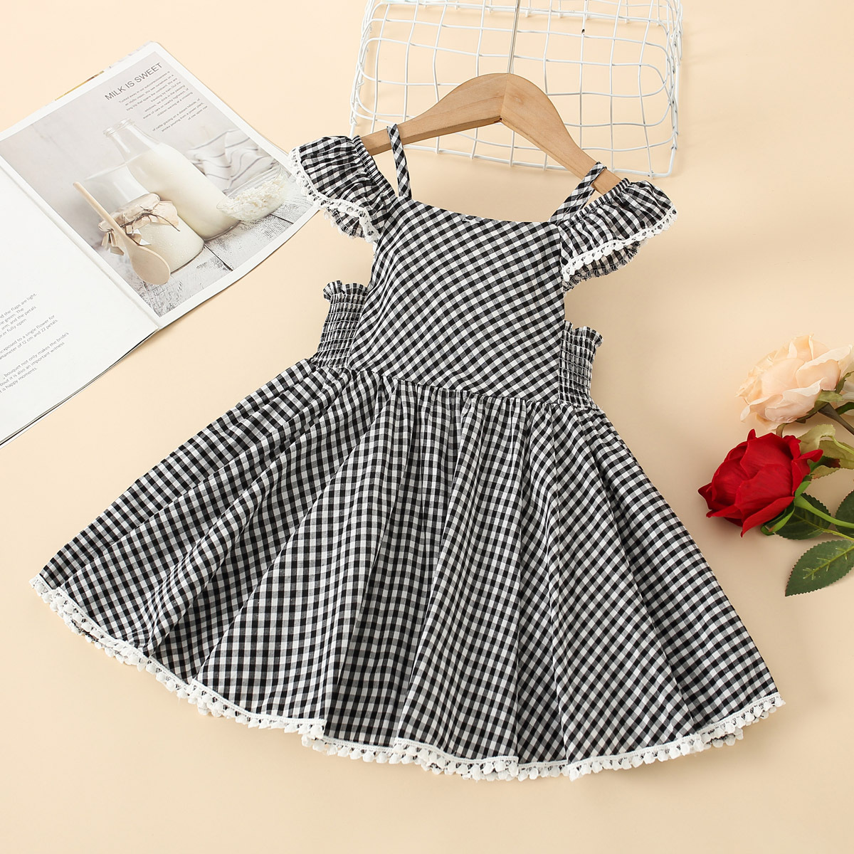 Toddler Girls Square Neck Plaid Color-block Bow Dress Wholesale