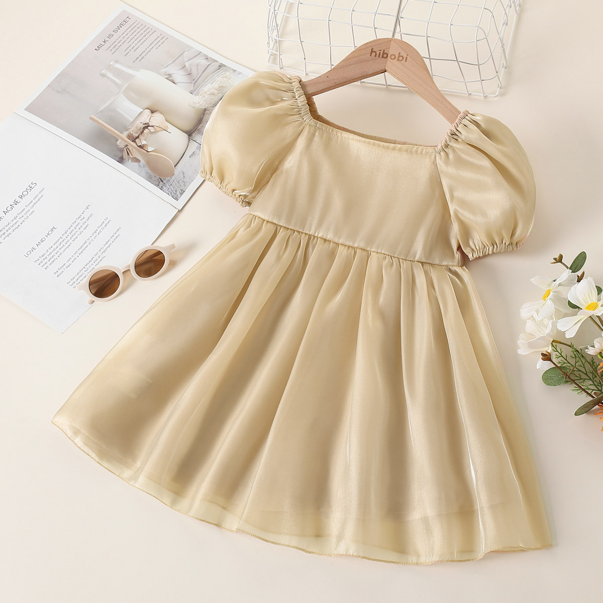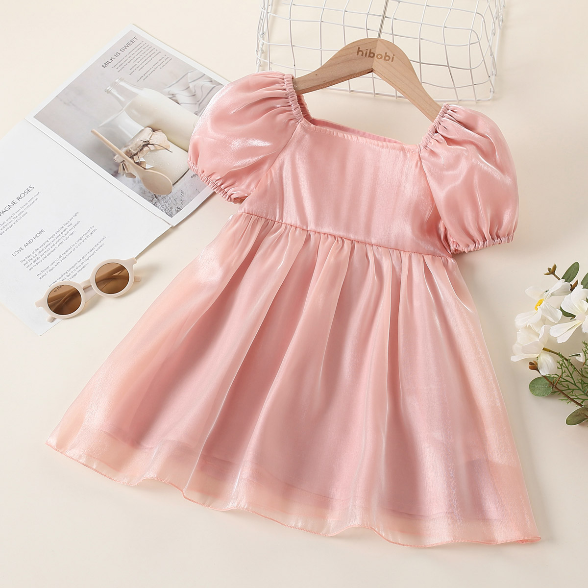 Toddler Girls Square Neck Solid Color-block Dress Wholesale