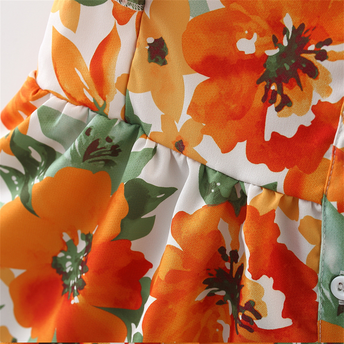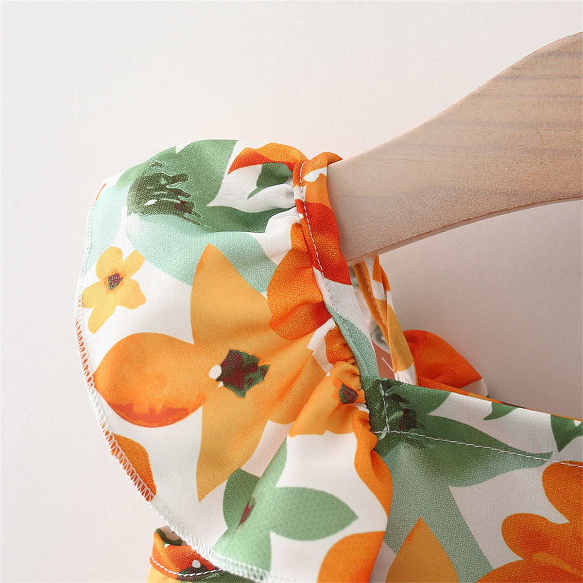 Toddler Girls Square Neck Sweet Floral Butterfly Sleeve Dress Wholesale