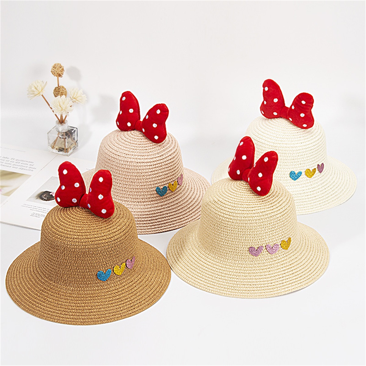 Toddler Polka Dot Bow Straw Hat Wholesale