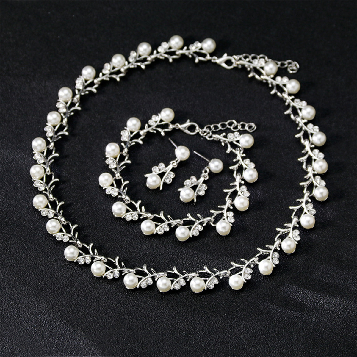 Women 3-Piece Pearl Rhinestone Decoration Jewelry Set Wholesale