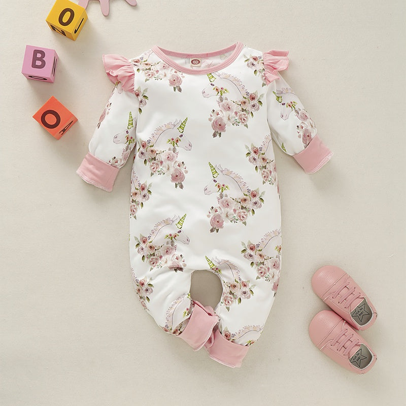 Ruffle Floral Printed Jumpsuit for Baby Girl Wholesale