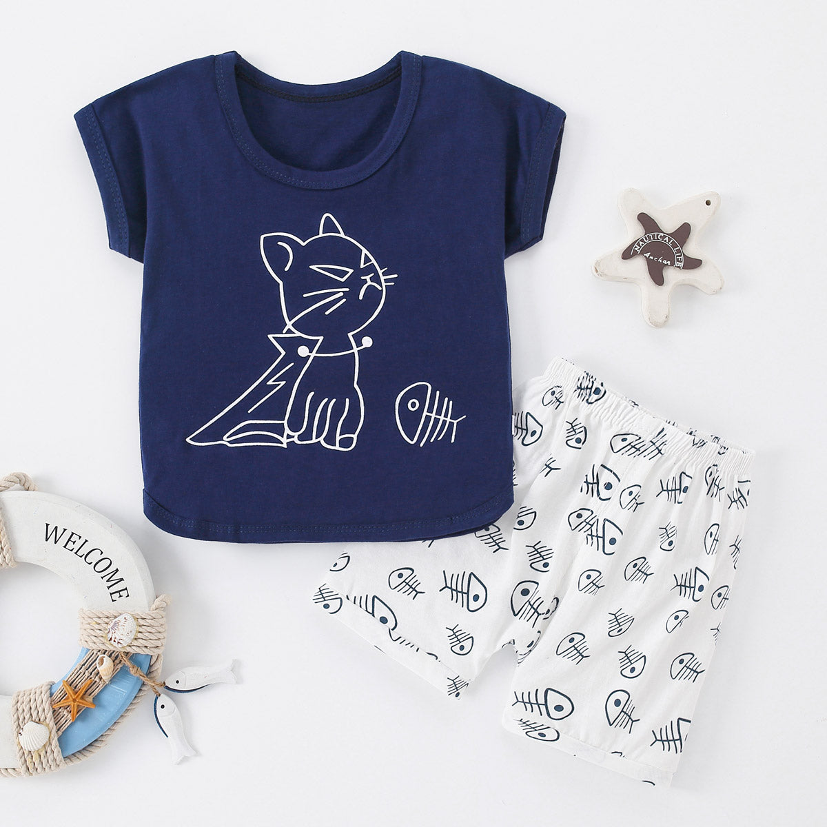 Toddler Boy 2pcs Cute Cartoon Print T-shirt Pantsuits Wholesale