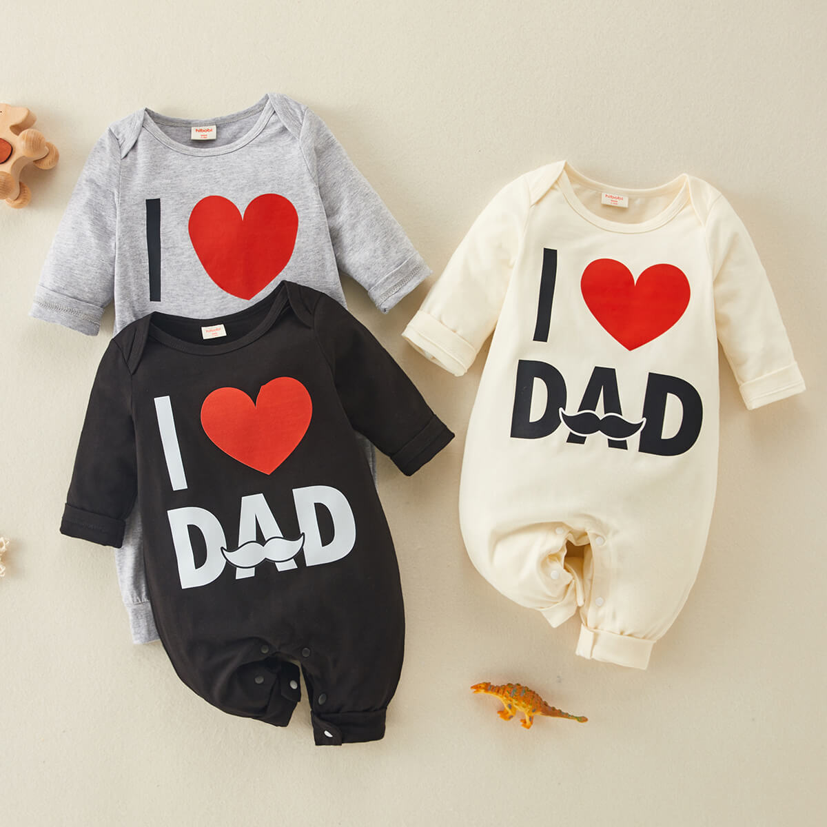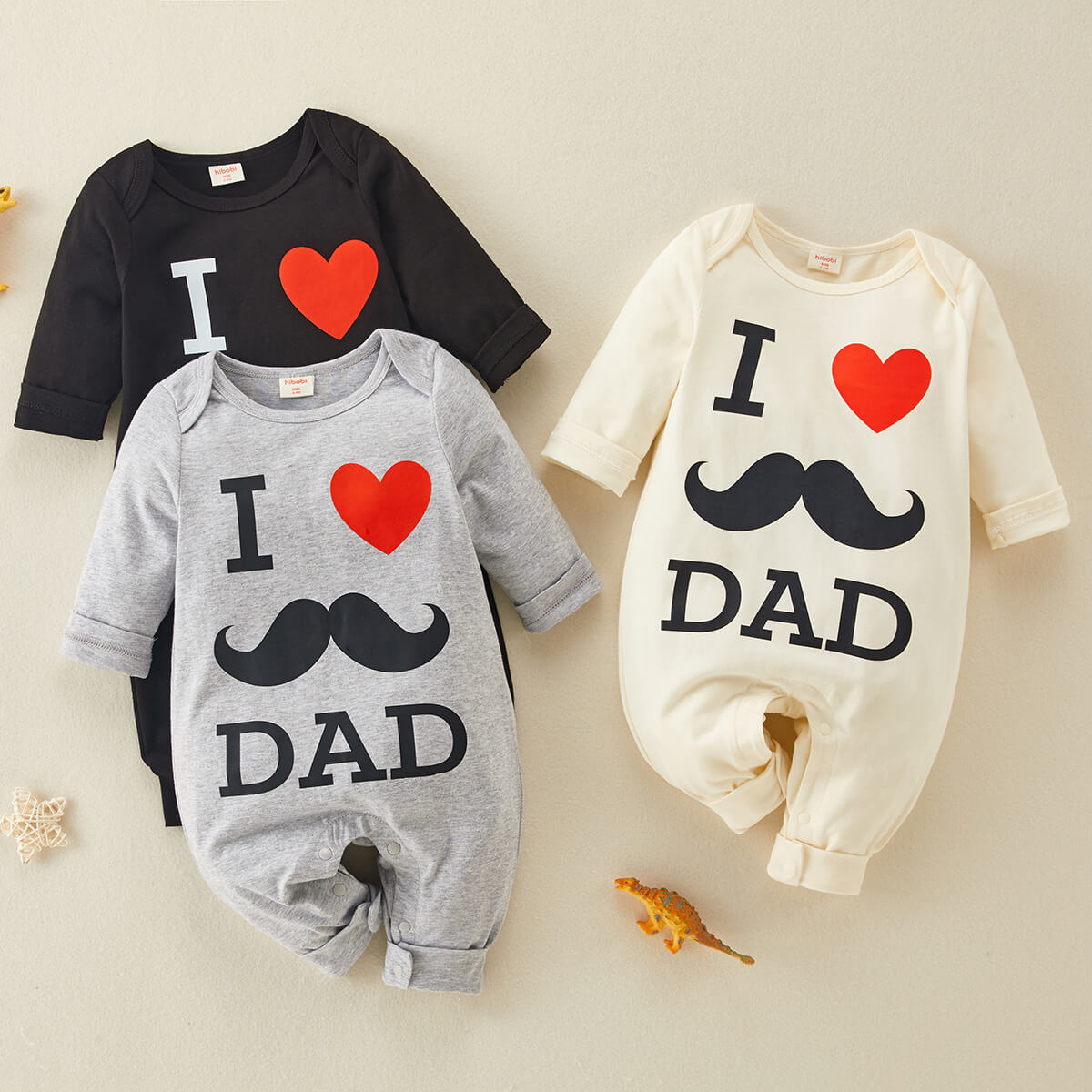 Baby Solid Letter Mustache Cartoon Print Long Sleeve Cotton Jumpsuit Wholesale