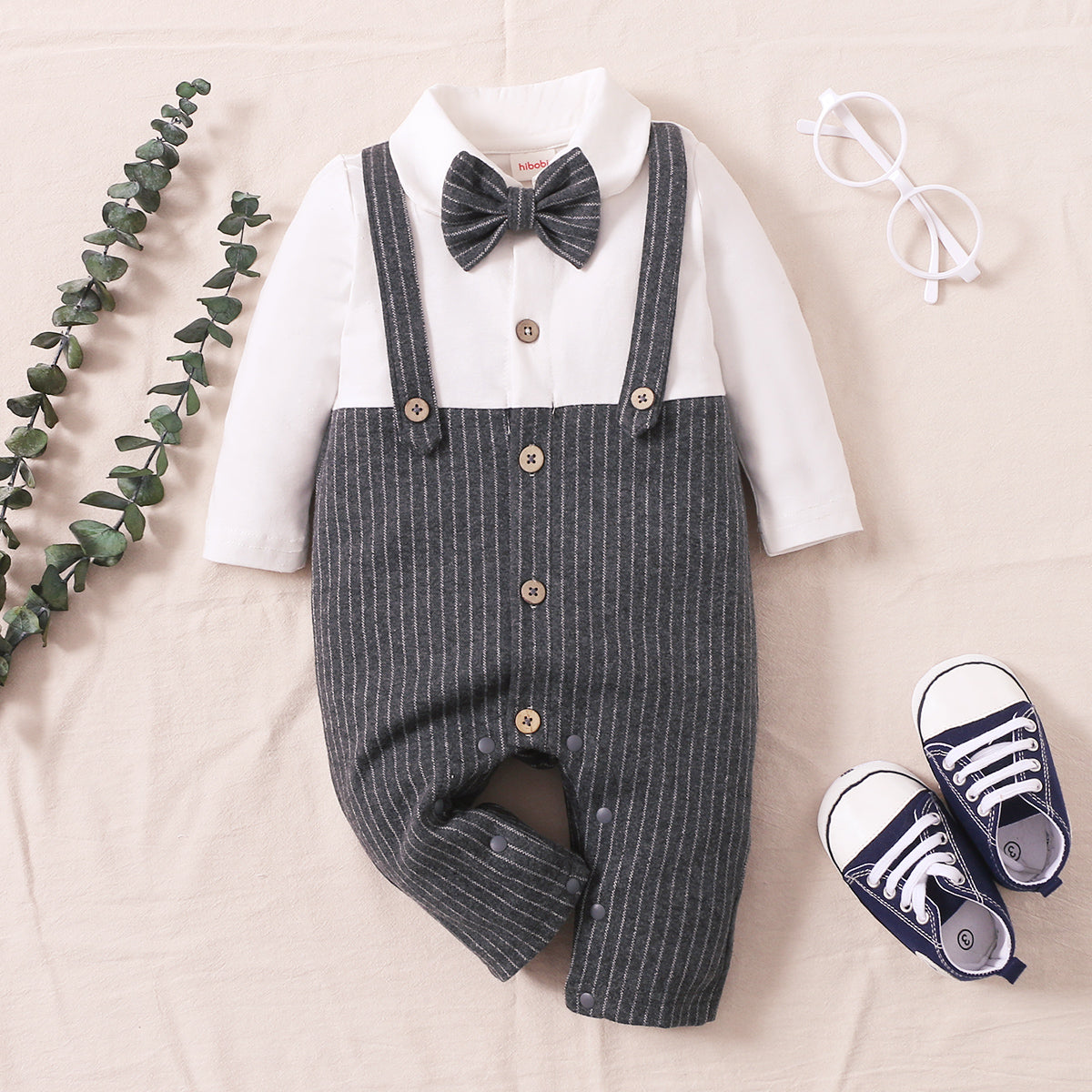 Baby Boy Gentleman Color-block Bow Tie Stripe Long Sleeve Jumpsuit Wholesale