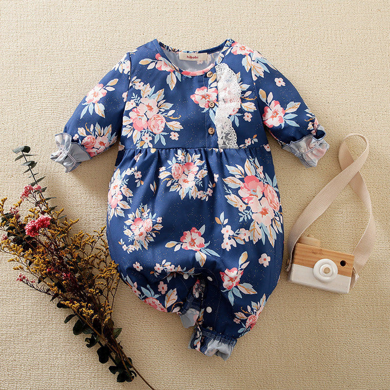 Baby Girl Floral Lace Ruffle Long sleeve Jumpsuit Wholesale