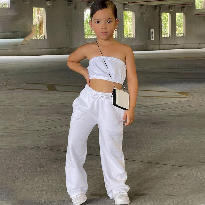Kids Girls Solid Tube Top & Pants Set Wholesale