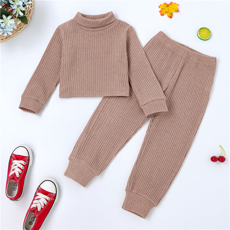 Toddler Girl Solid Color Turtleneck Sweater & Ninth Pants Wholesale