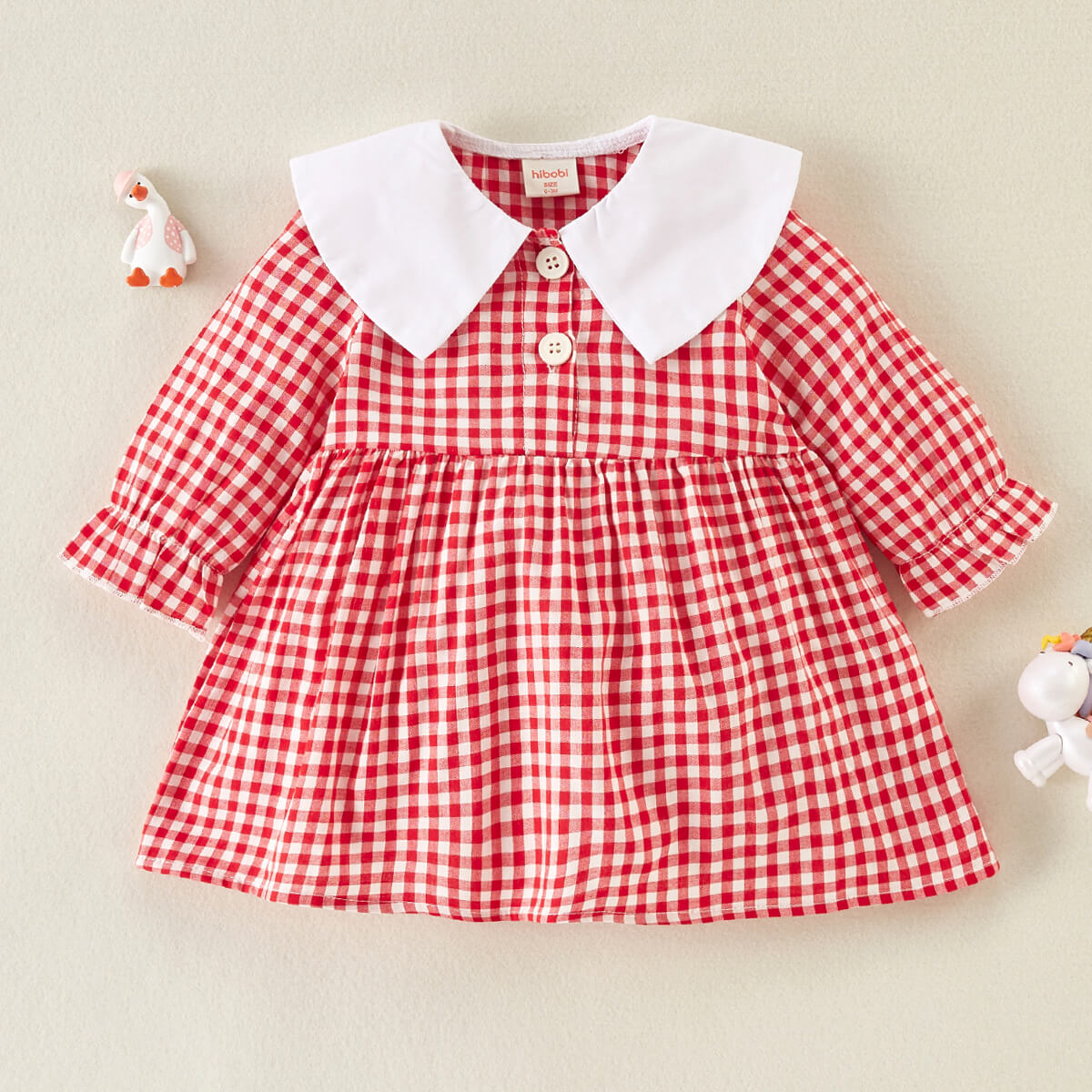 Baby Girl Cute Doll-collar Red Plaid Long Sleeve Dress Wholesale