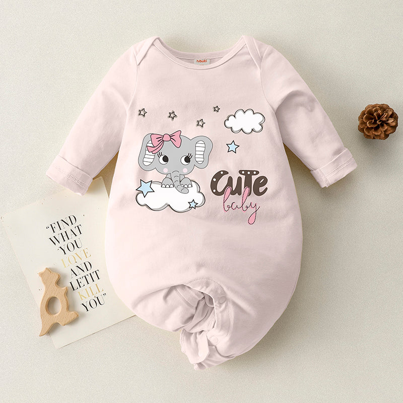 Baby Solid Elephant Print Long Sleeve Cotton Jumpsuit Wholesale